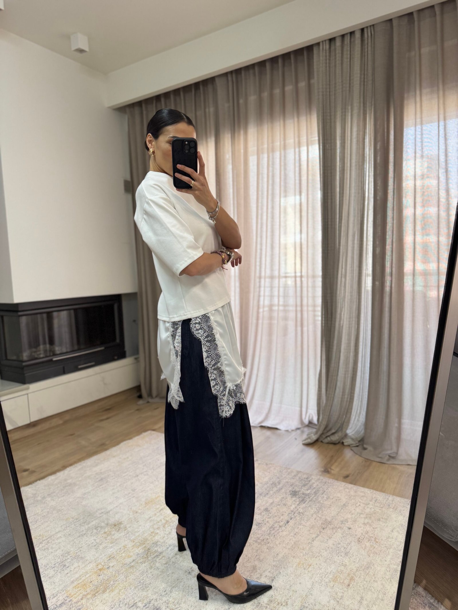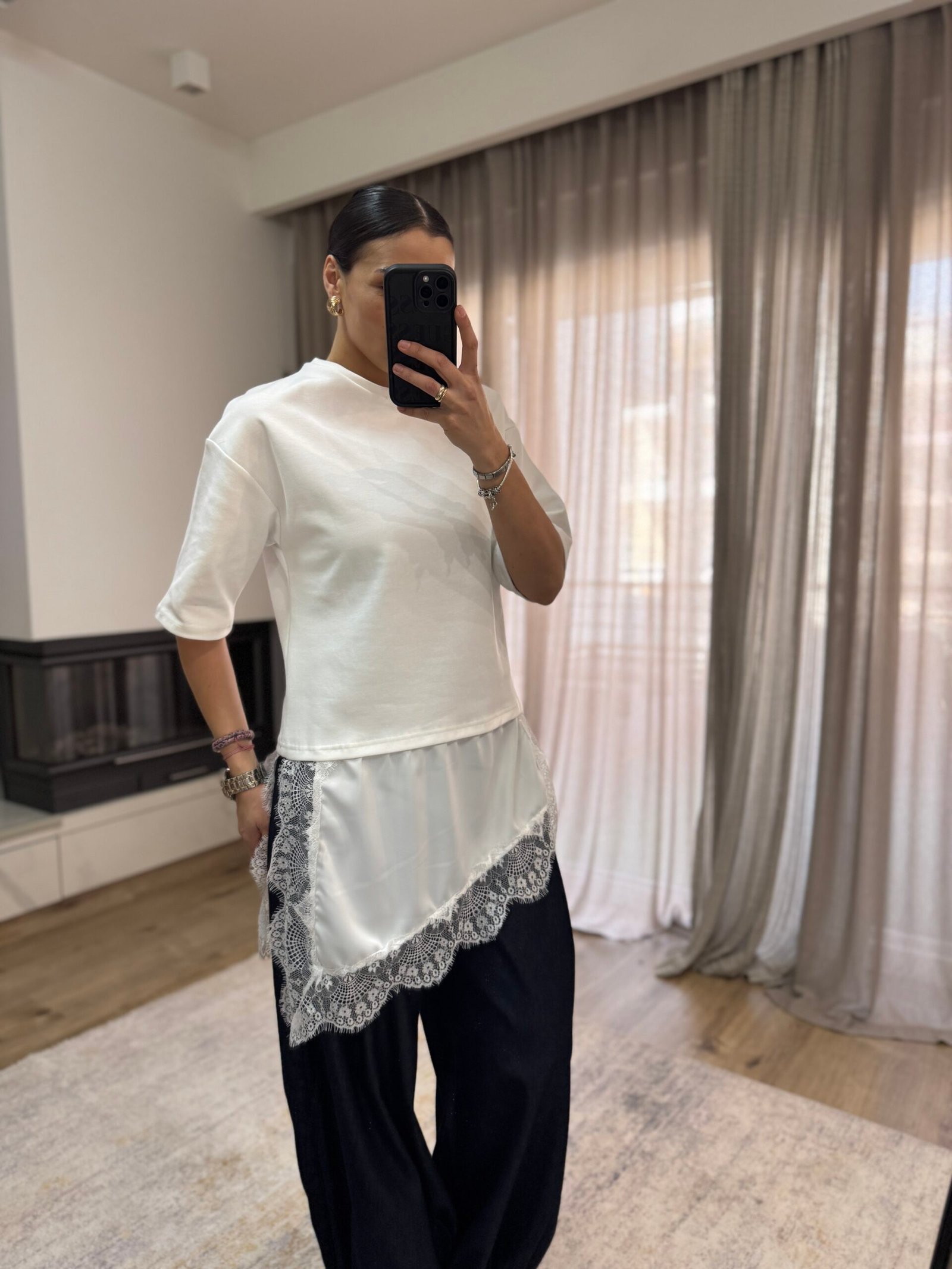 Ασύμμετρη Μπλούζα με Συνδυασμό Δαντέλα – Λευκό