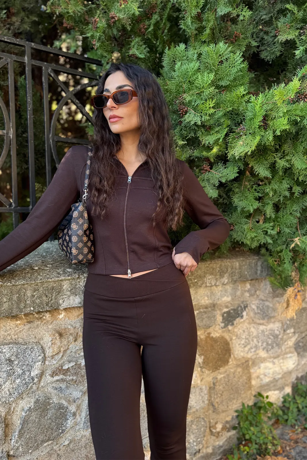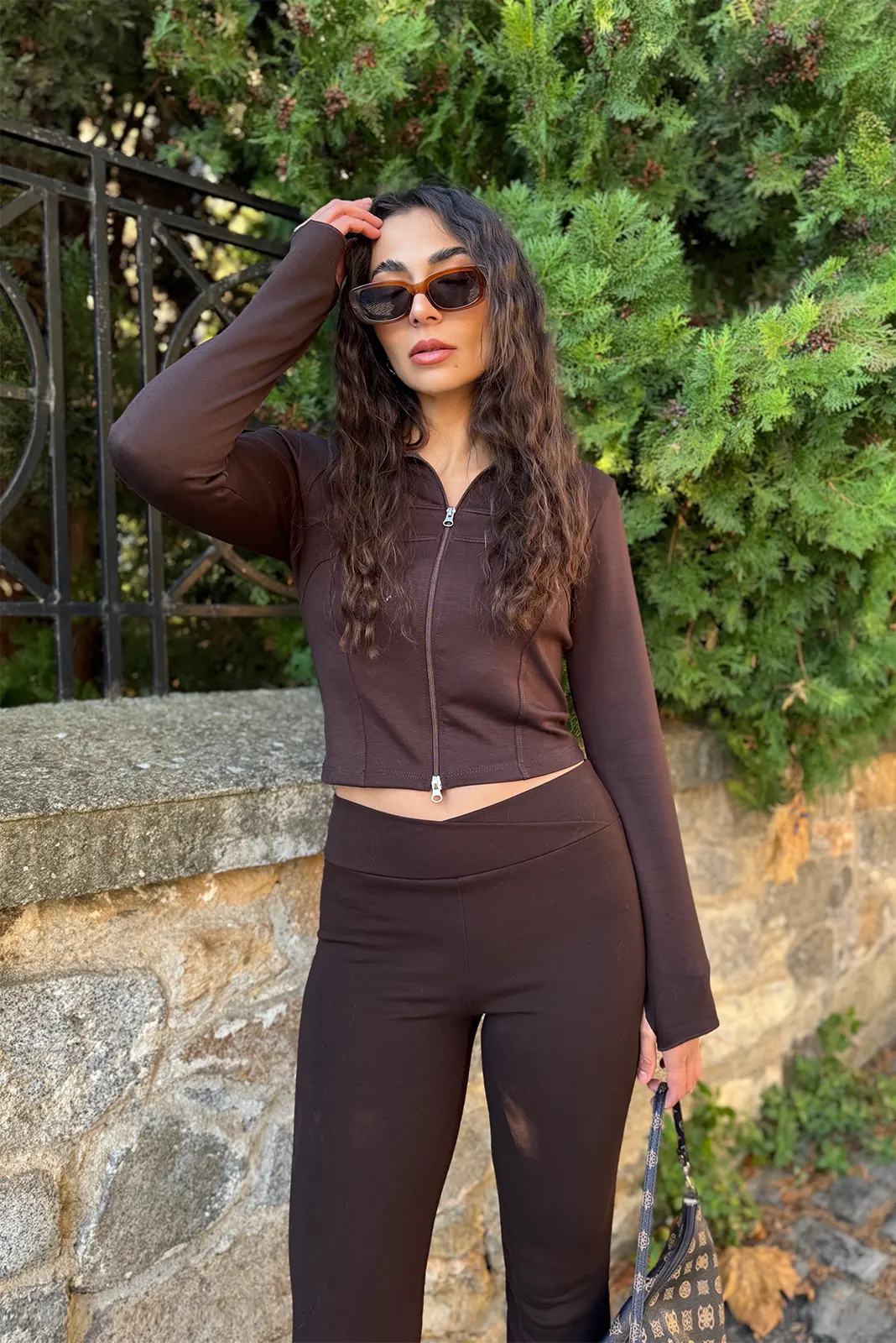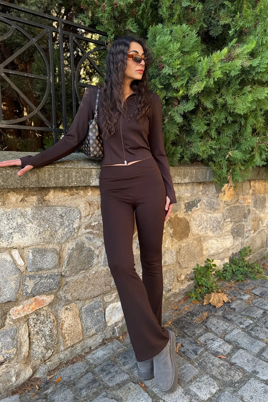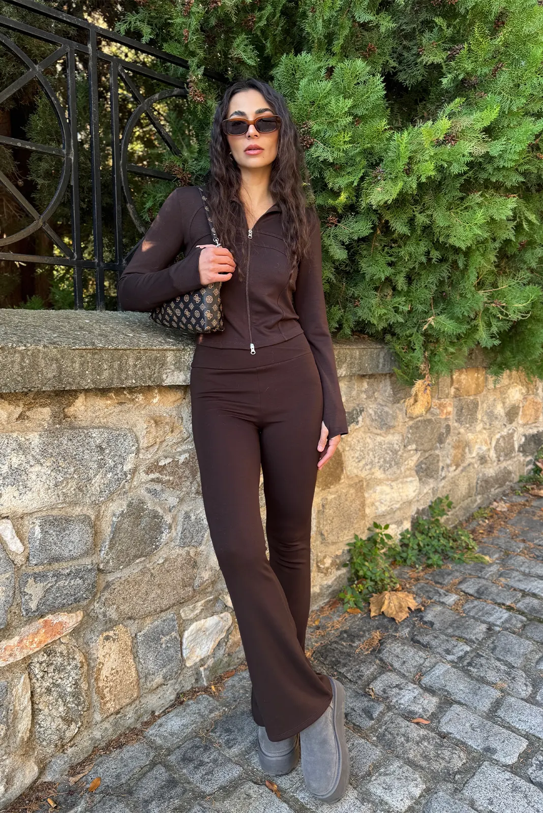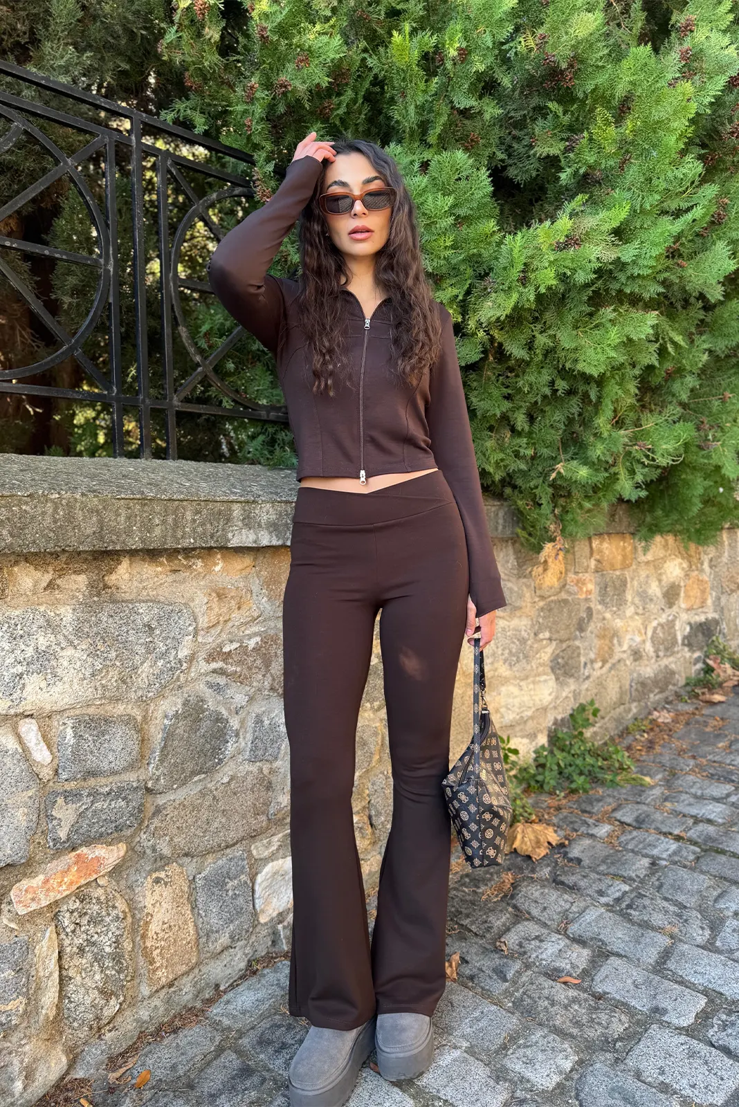 Αθλητικό Σετ Ζακέτα κ Κολάν Flare – Καφέ
