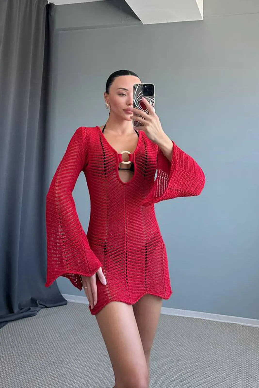 Beach Wear Κοντό Πλεκτό Φόρεμα – Κόκκινο