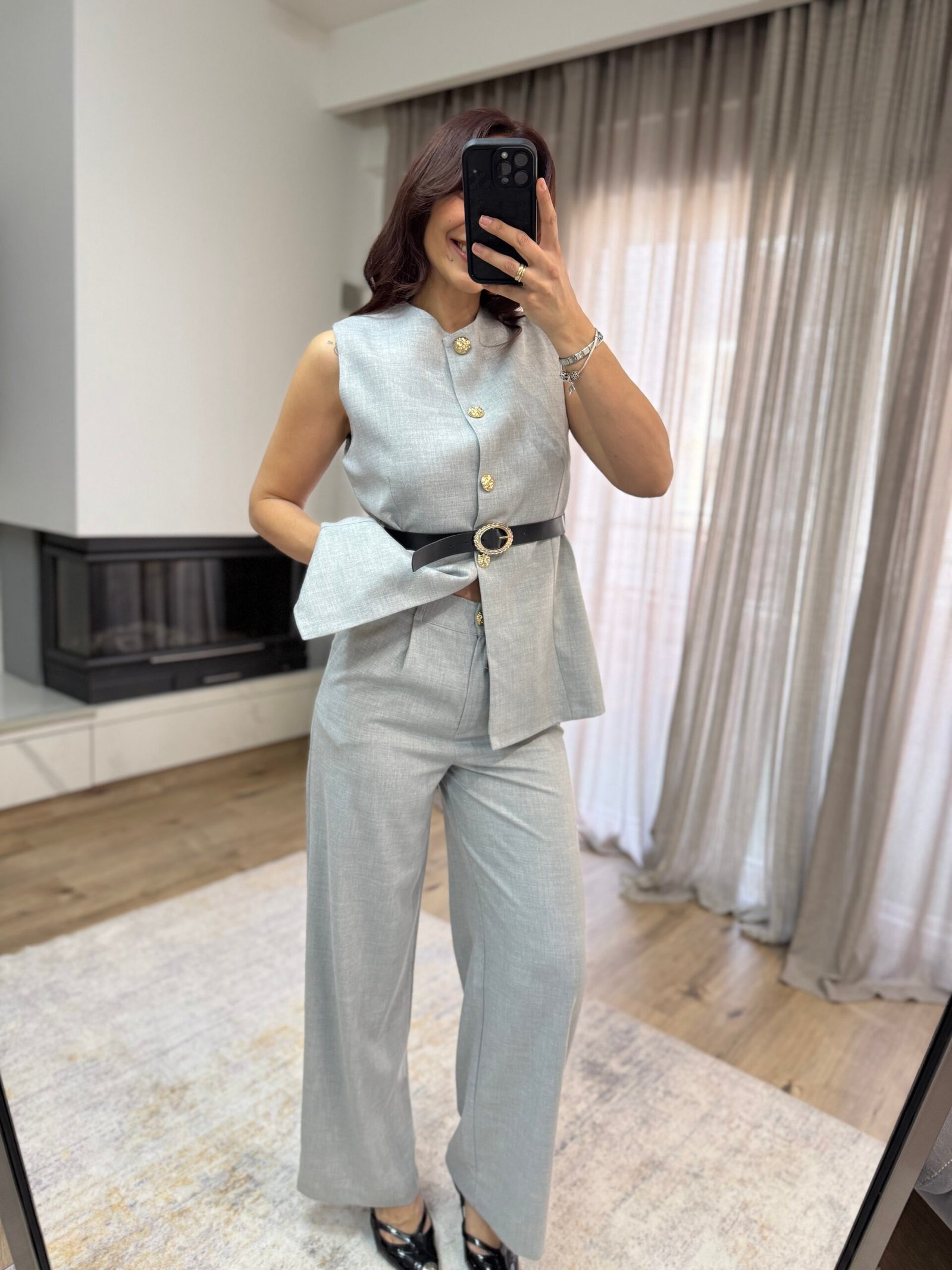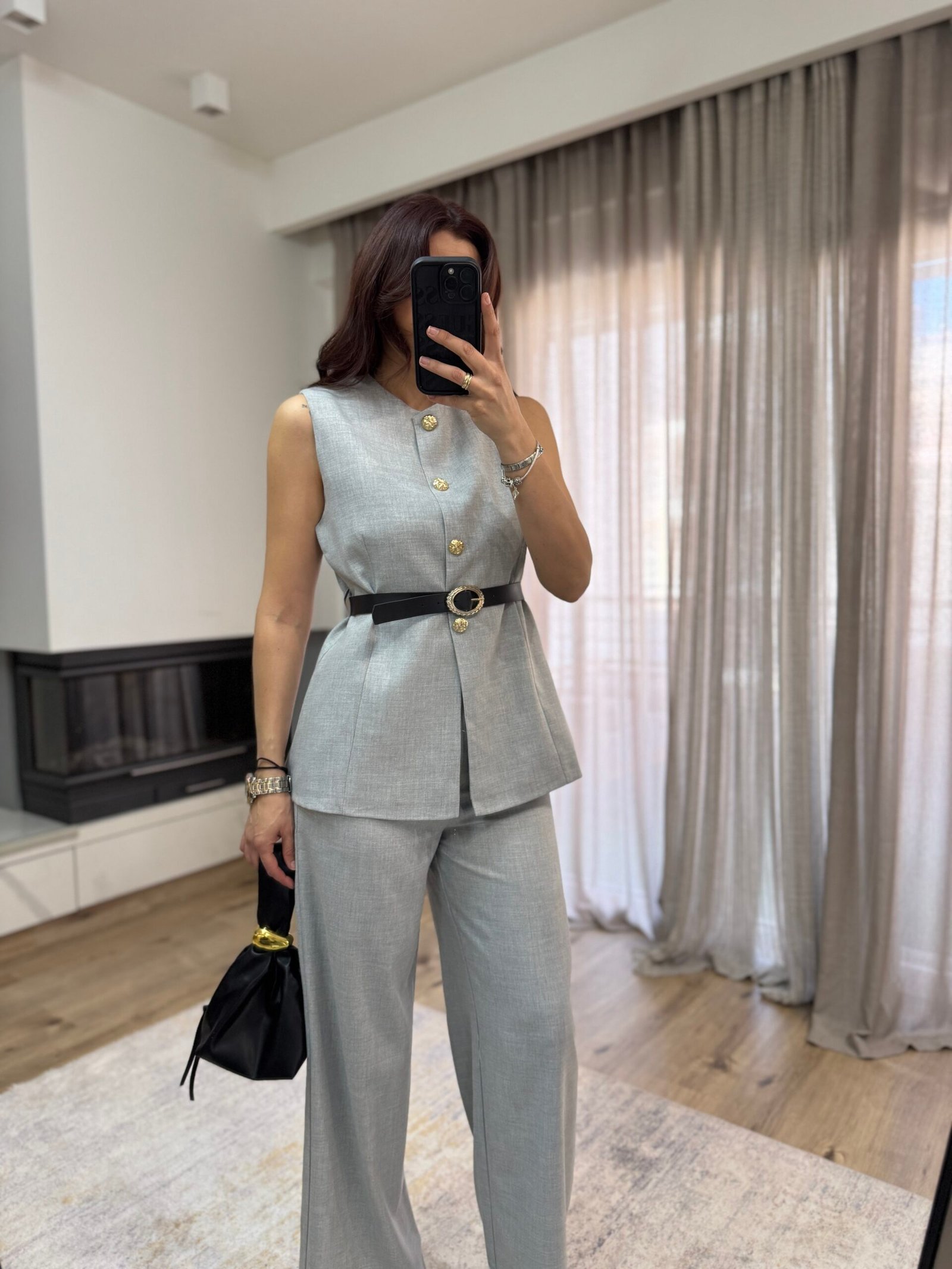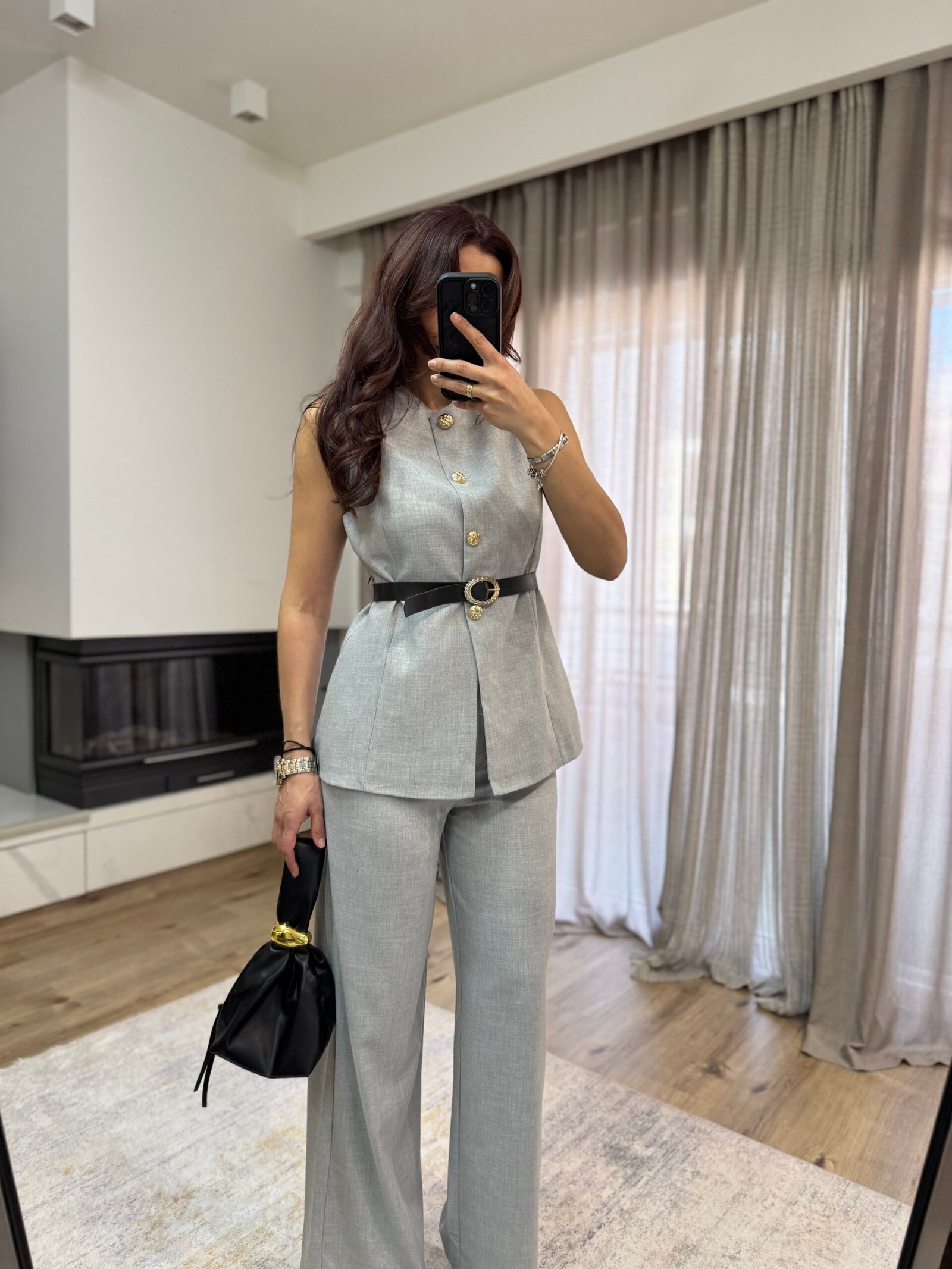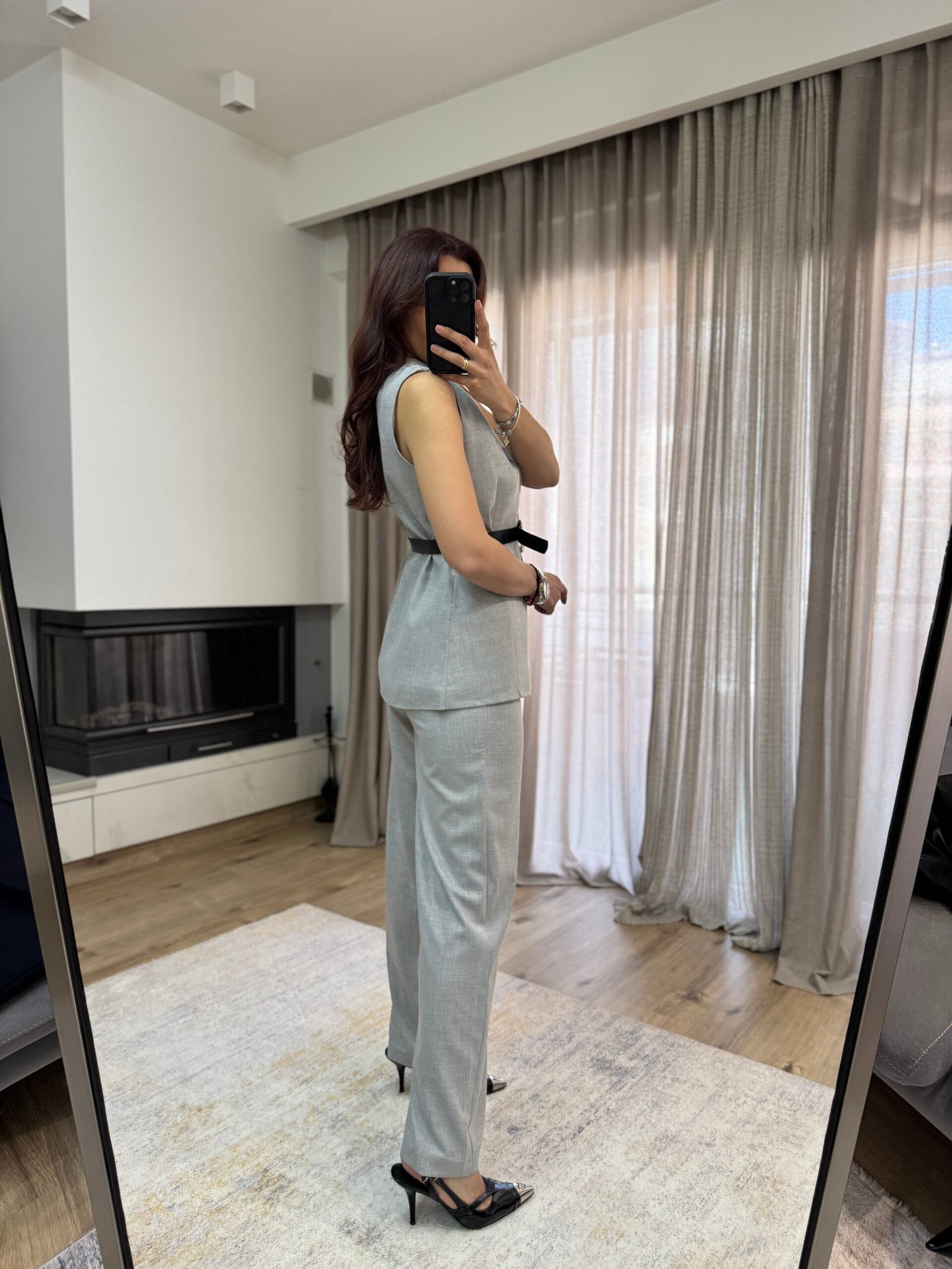 EmmaLine Σετ Γιλέκο με Ζώνη κ Παντελόνι – Γκρι