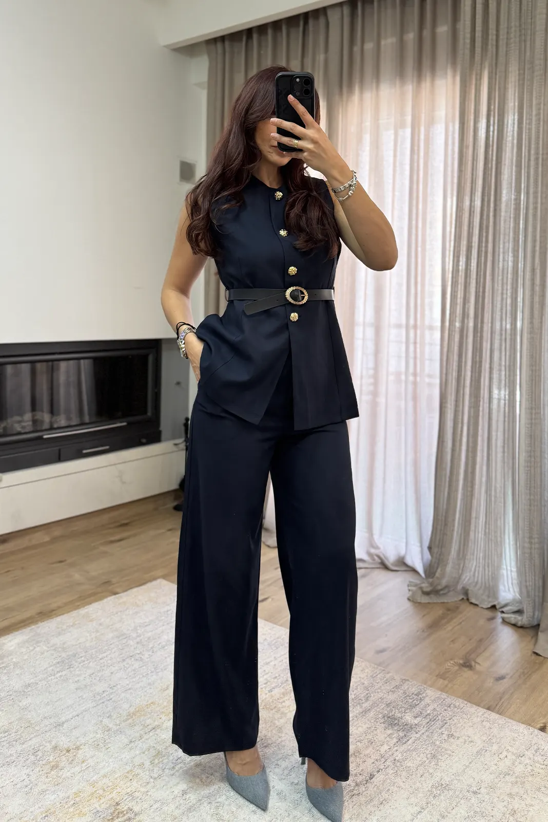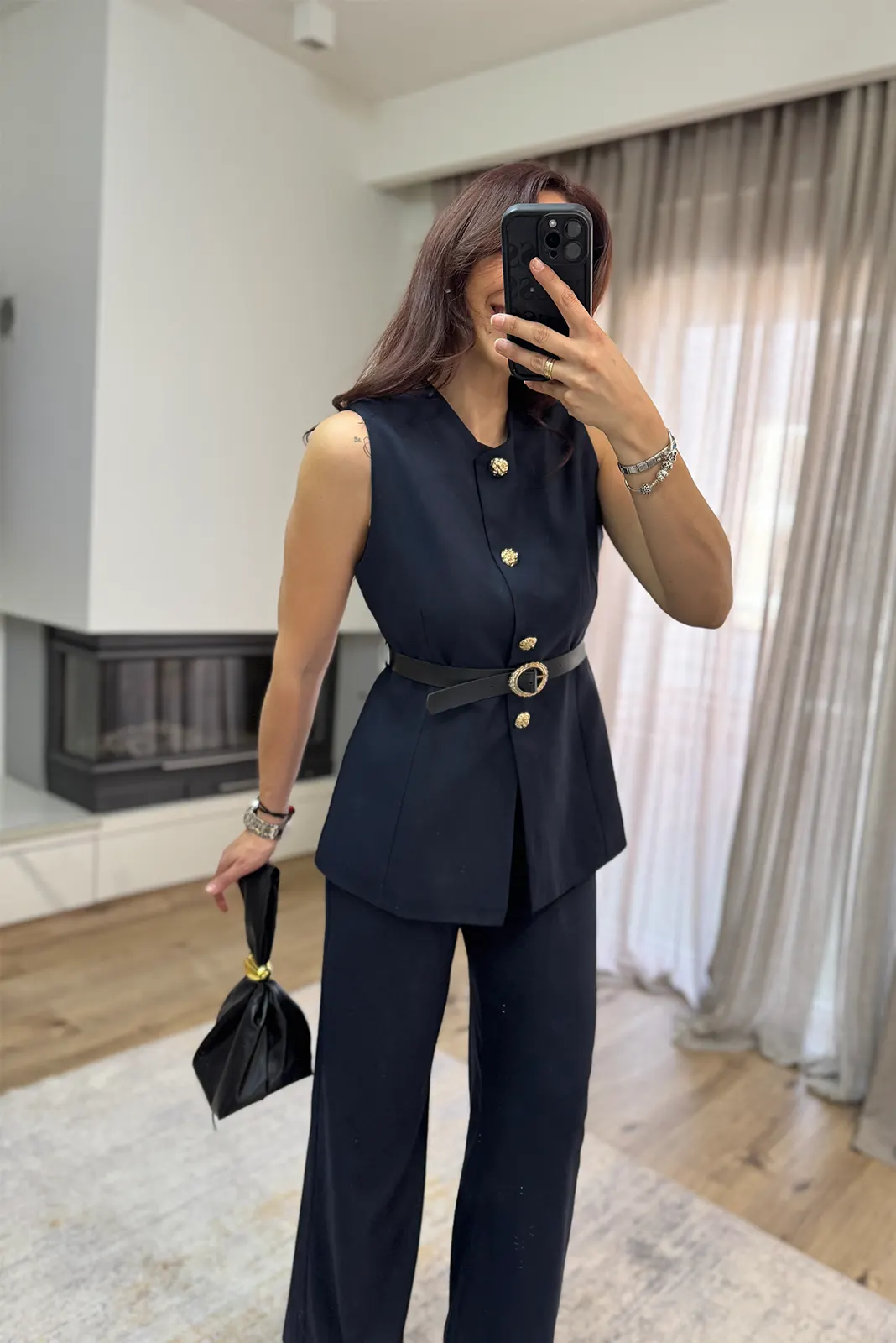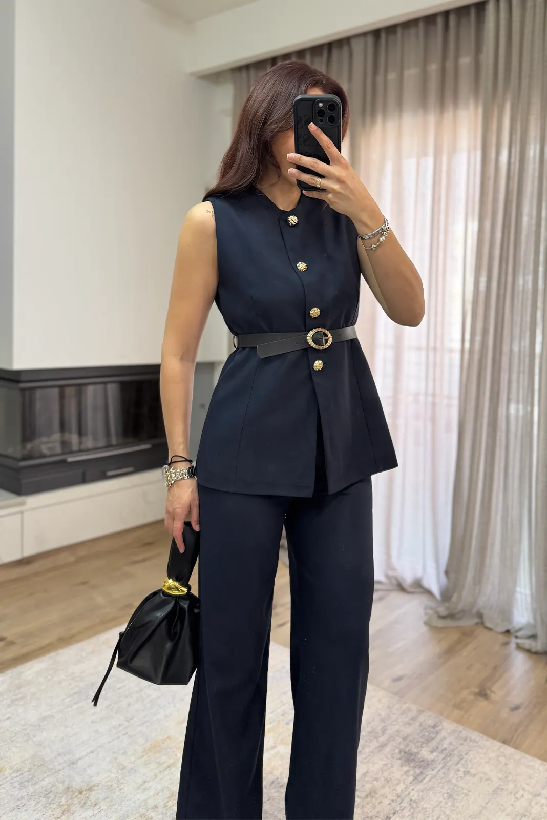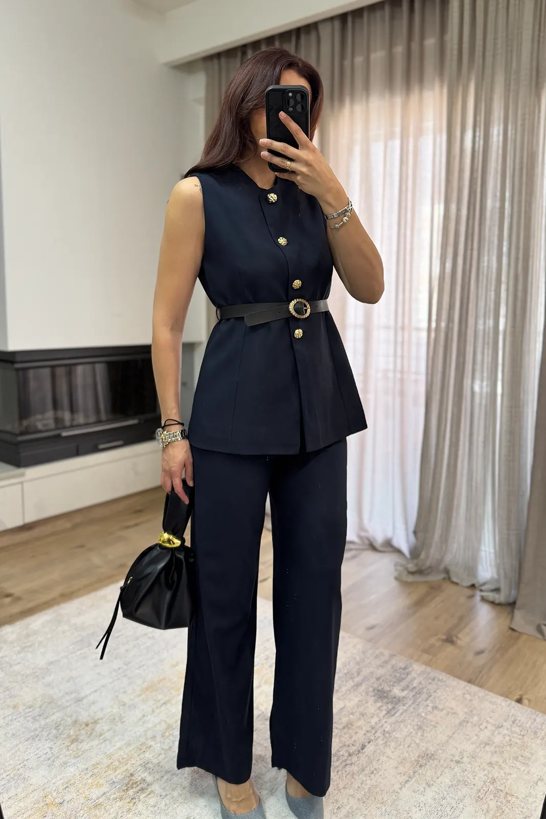 EmmaLine Σετ Γιλέκο με Ζώνη κ Παντελόνι – Σκούρο Μπλέ