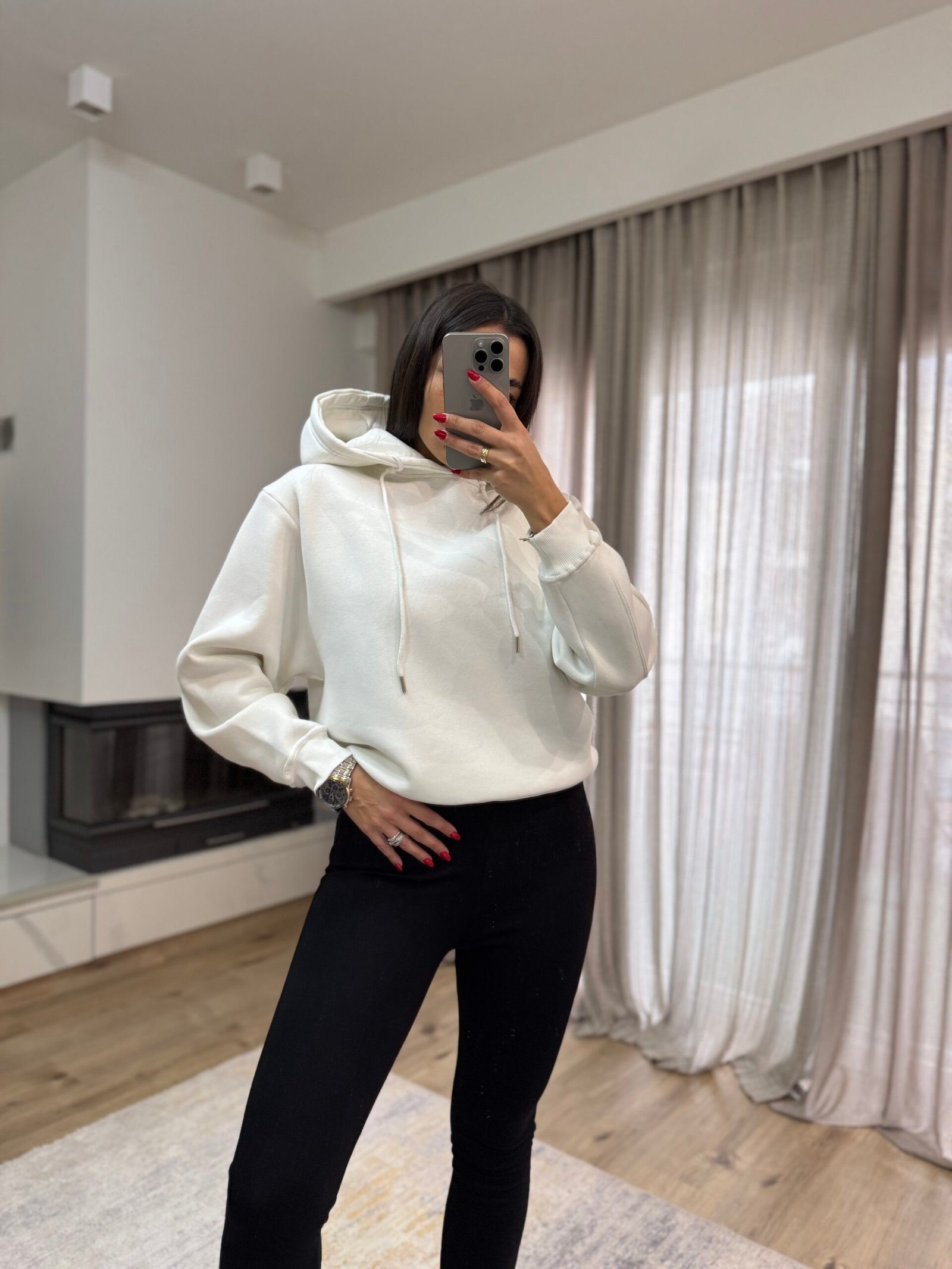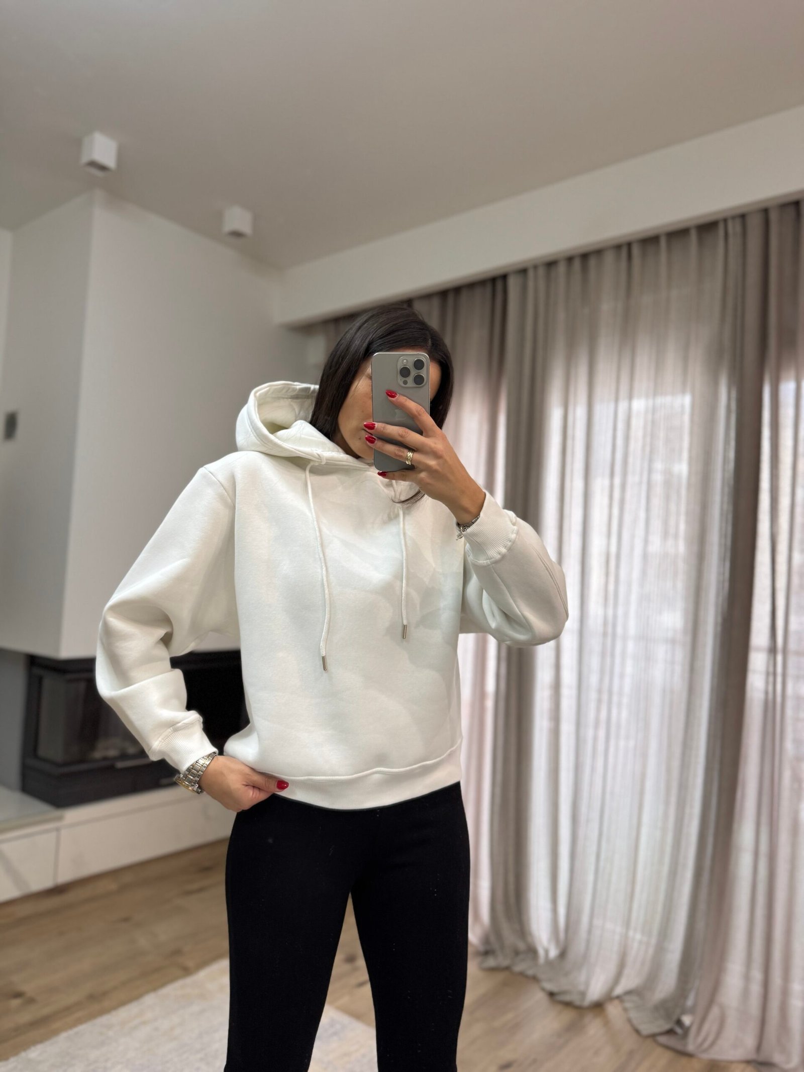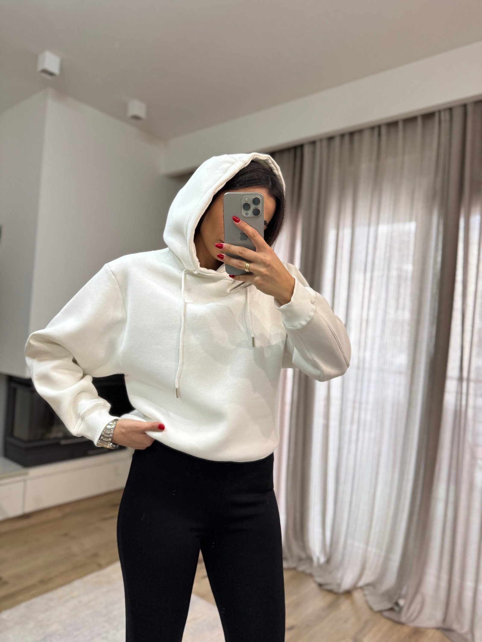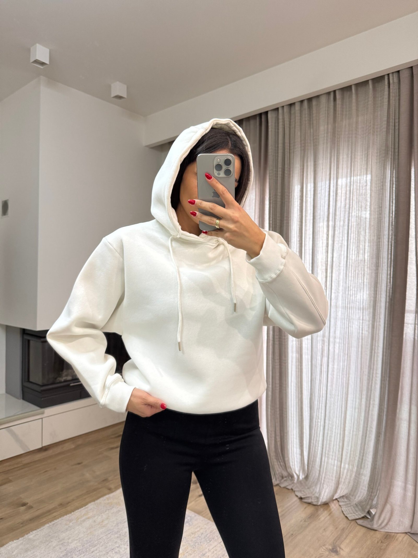 Φούτερ με Κουκούλα κ Fleece Επένδυση – Λευκό