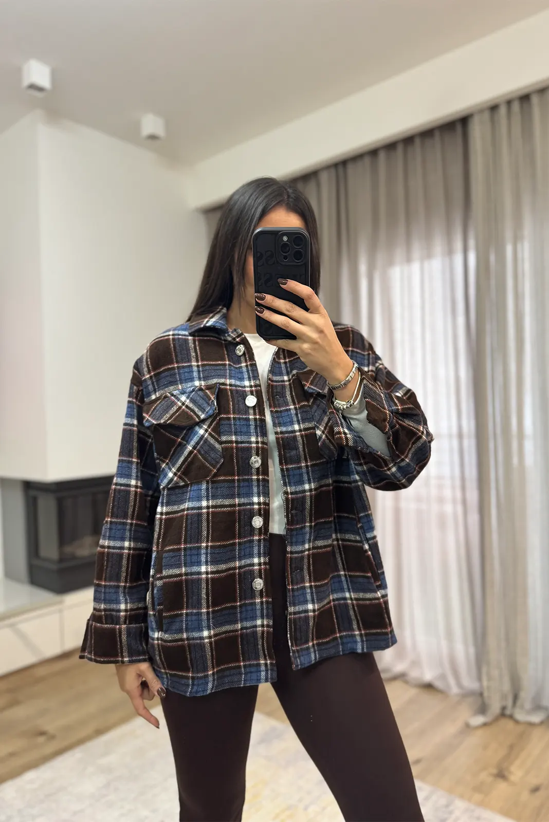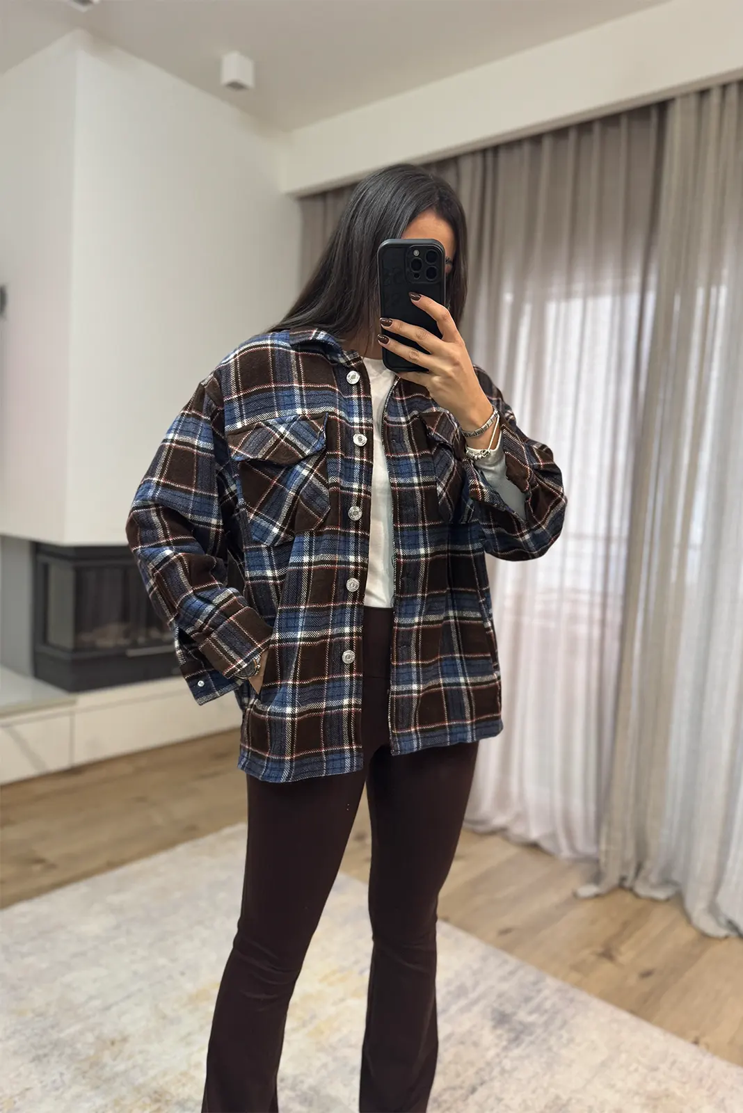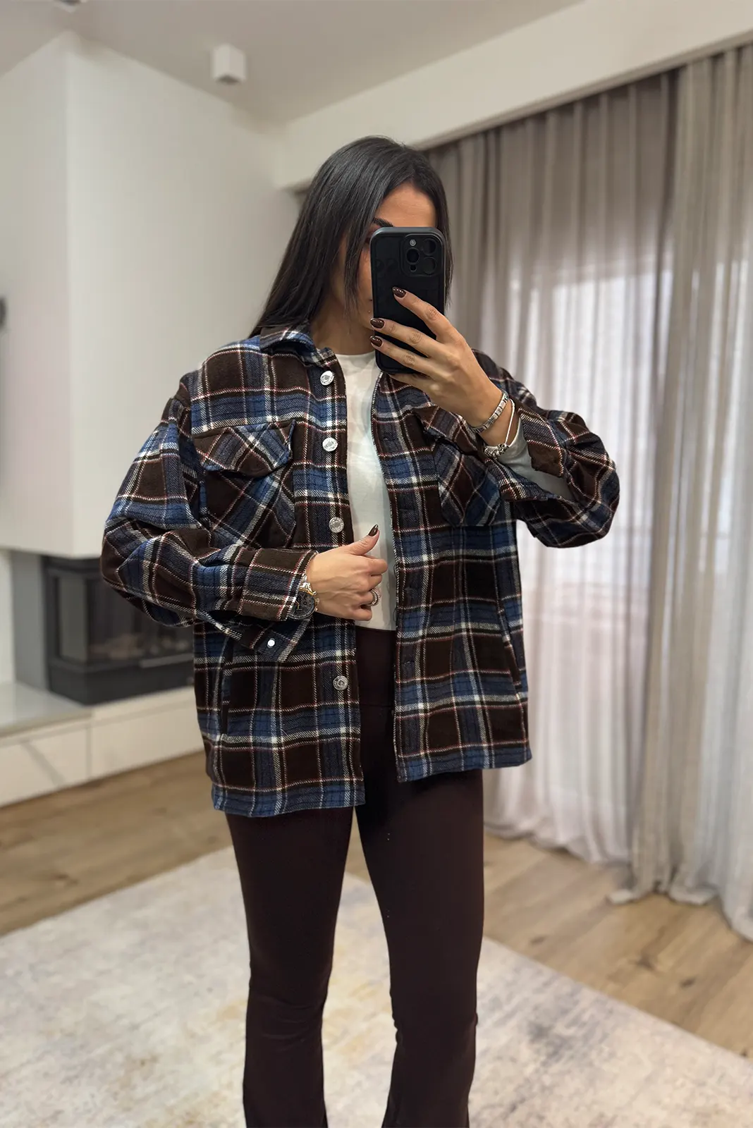 Καρό Πουκάμισο Ζακέτα – Καφέ κ Μπλε