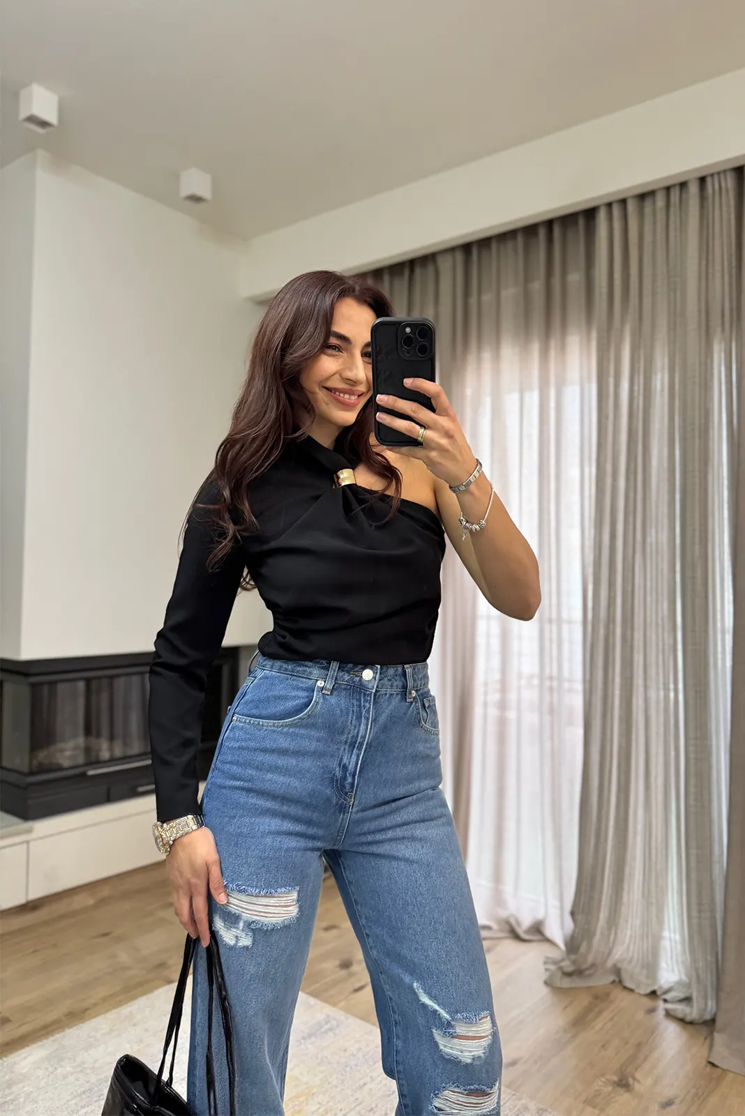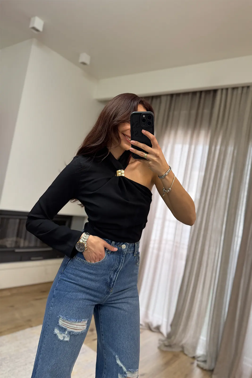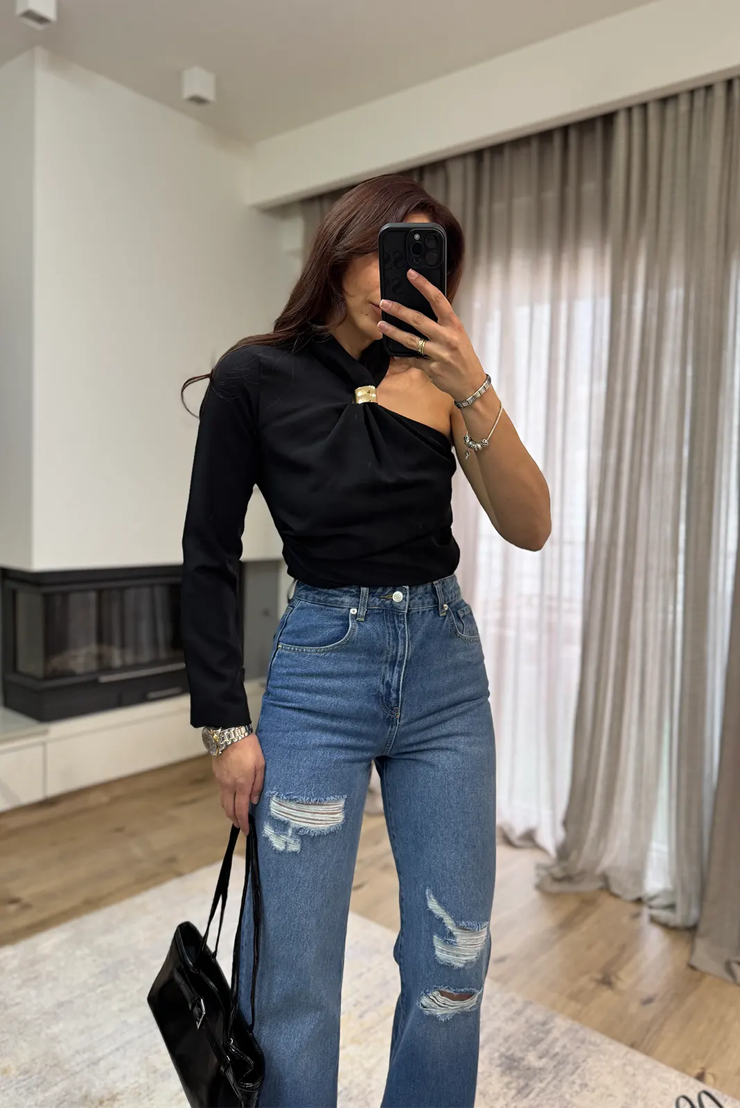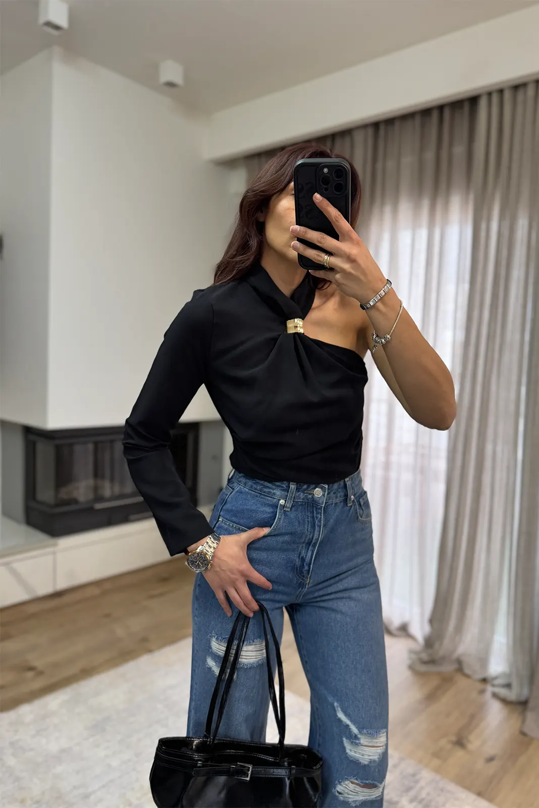 Kiara Μπλούζα με Ένα Μανίκι – Μαύρο