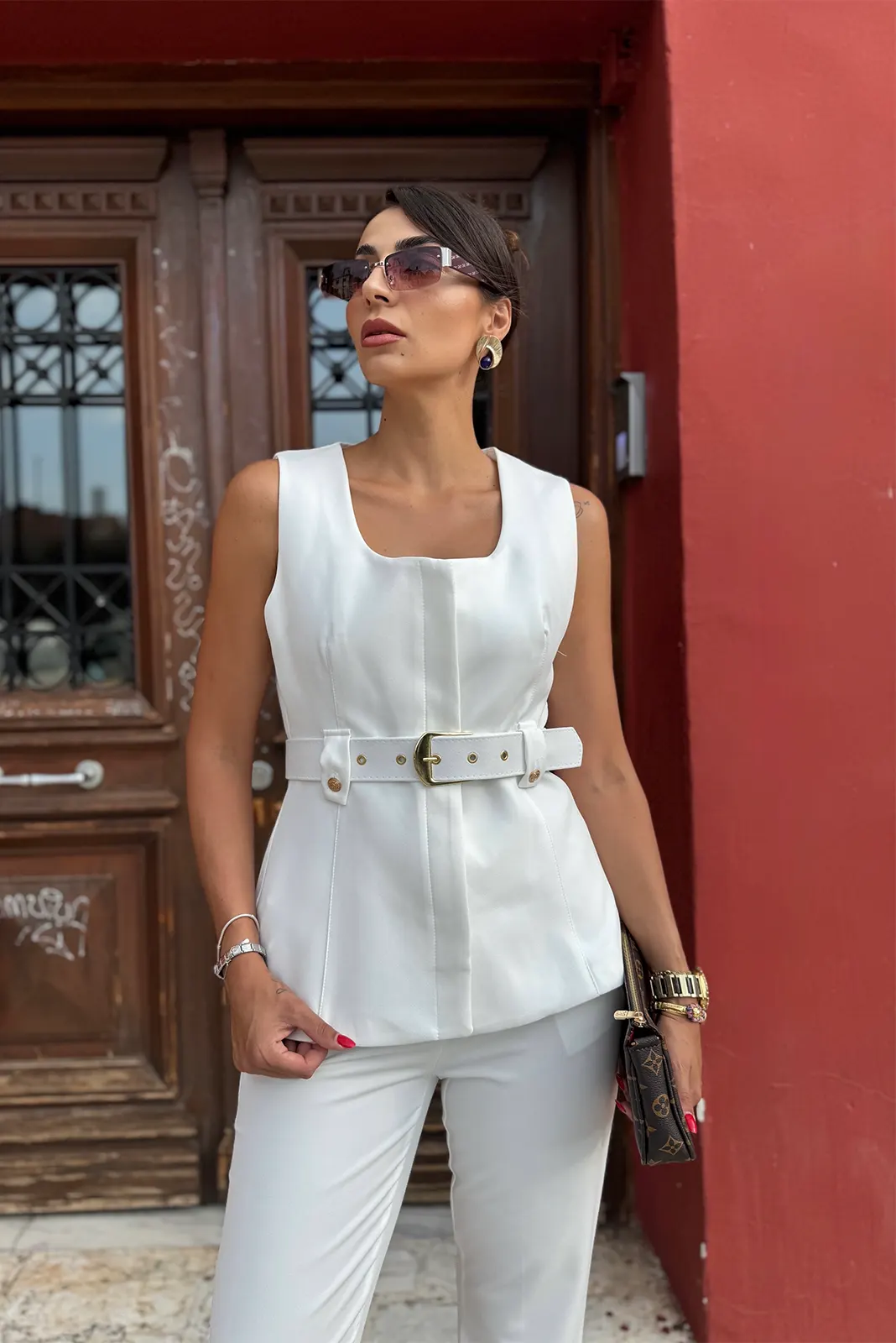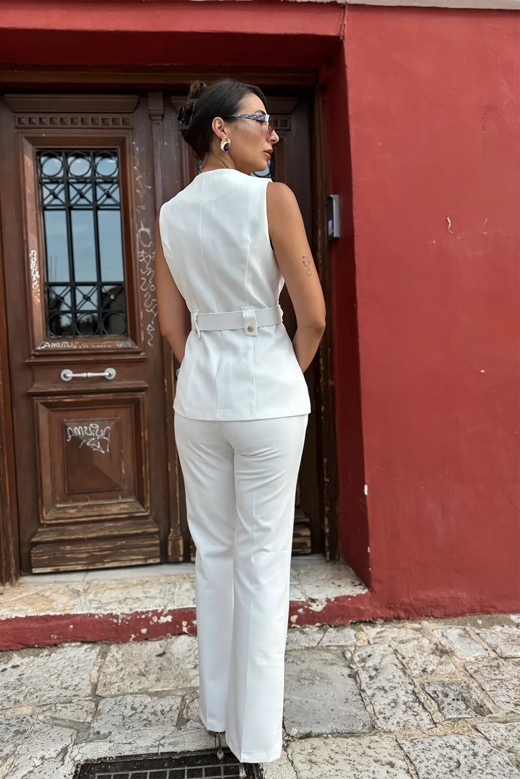 Lymea Σετ Σακάκι με Ζώνη και Παντελόνι – Λευκό