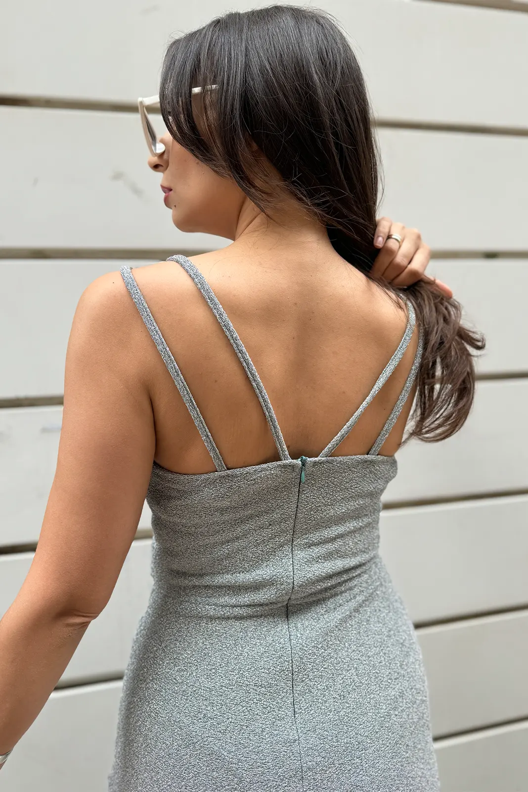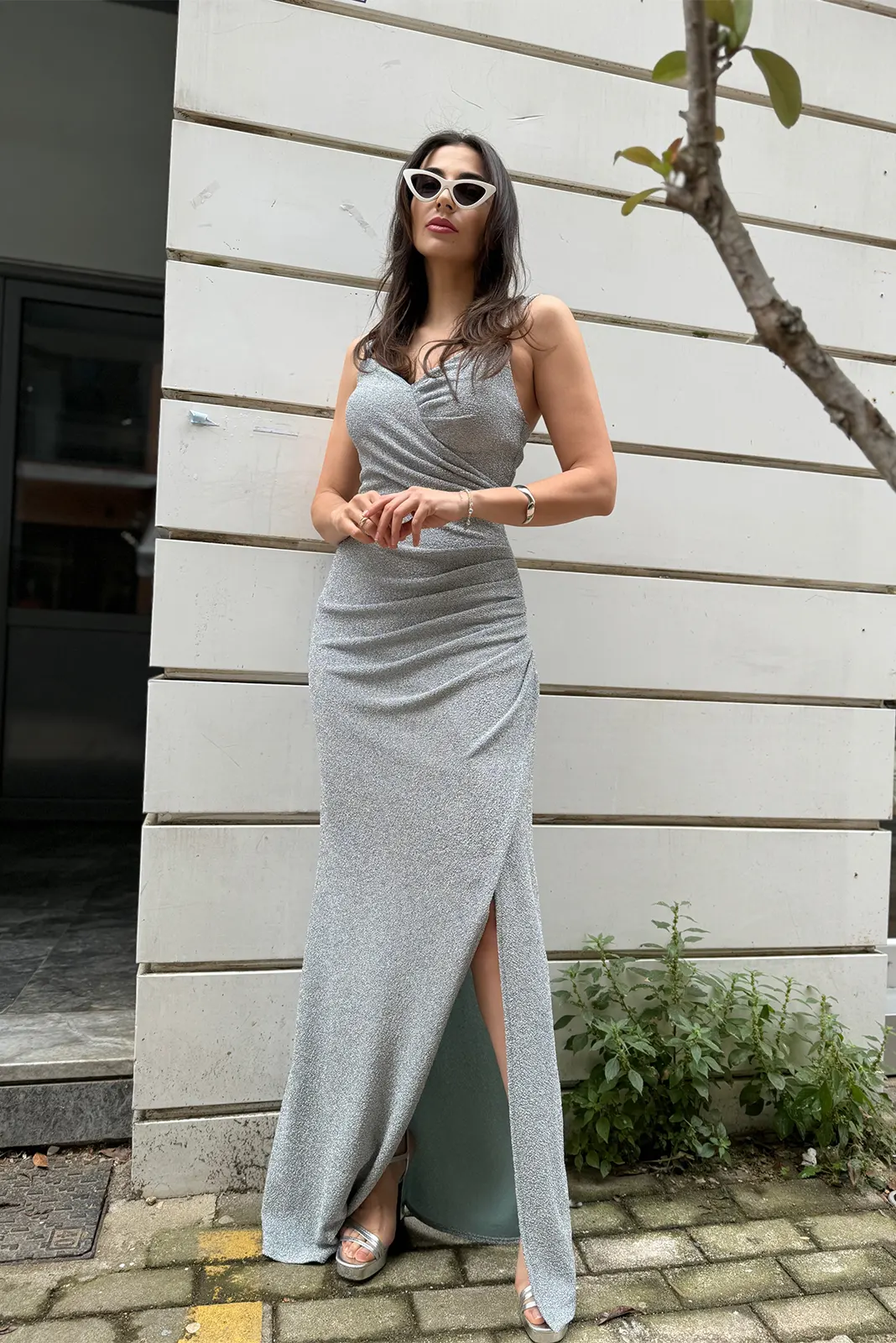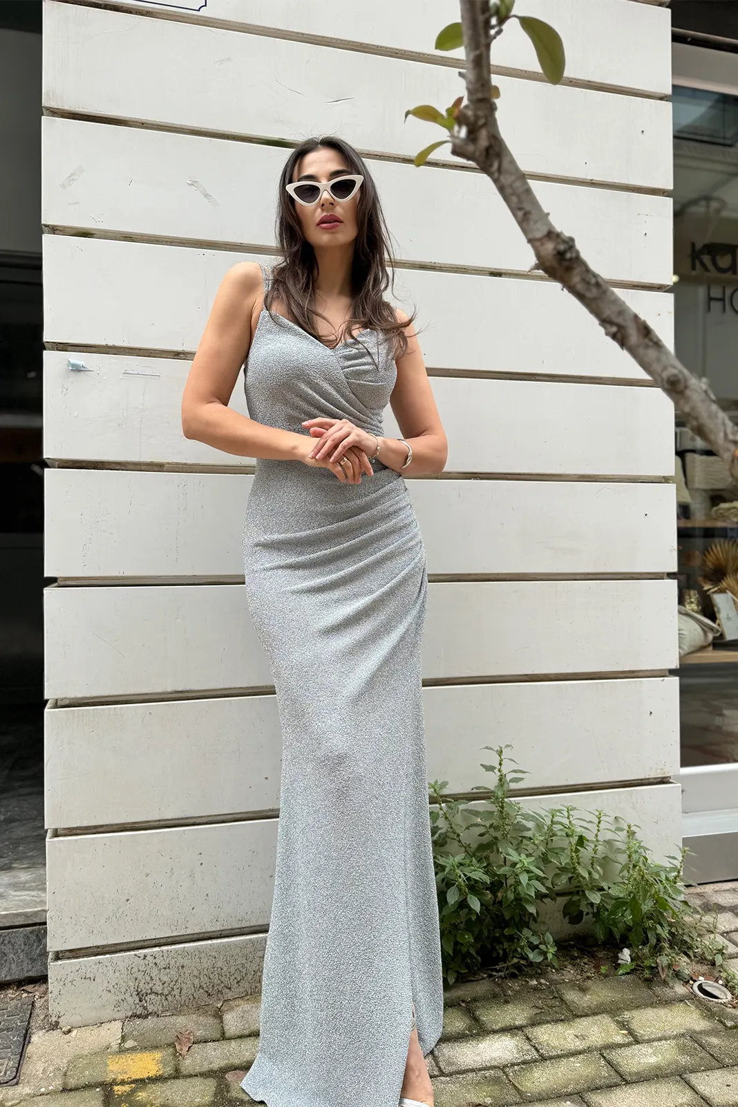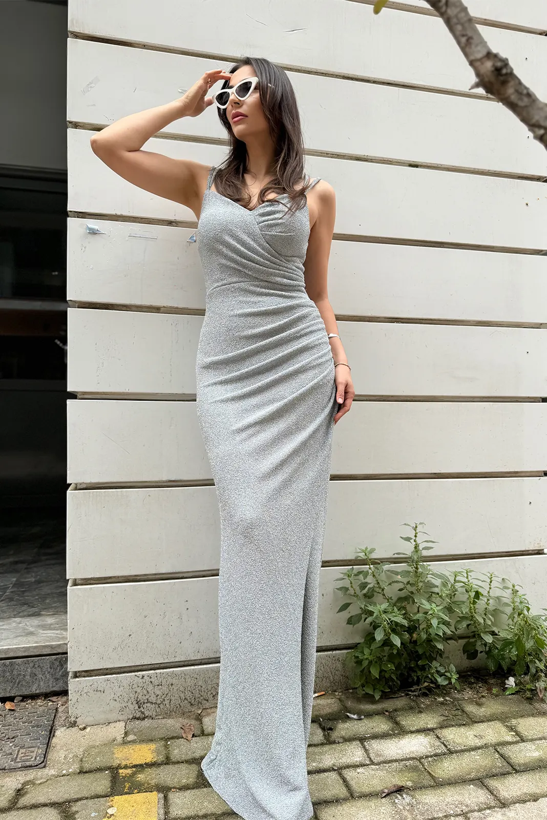 Mikael Maxi Φόρεμα με Glitter – Ασημί