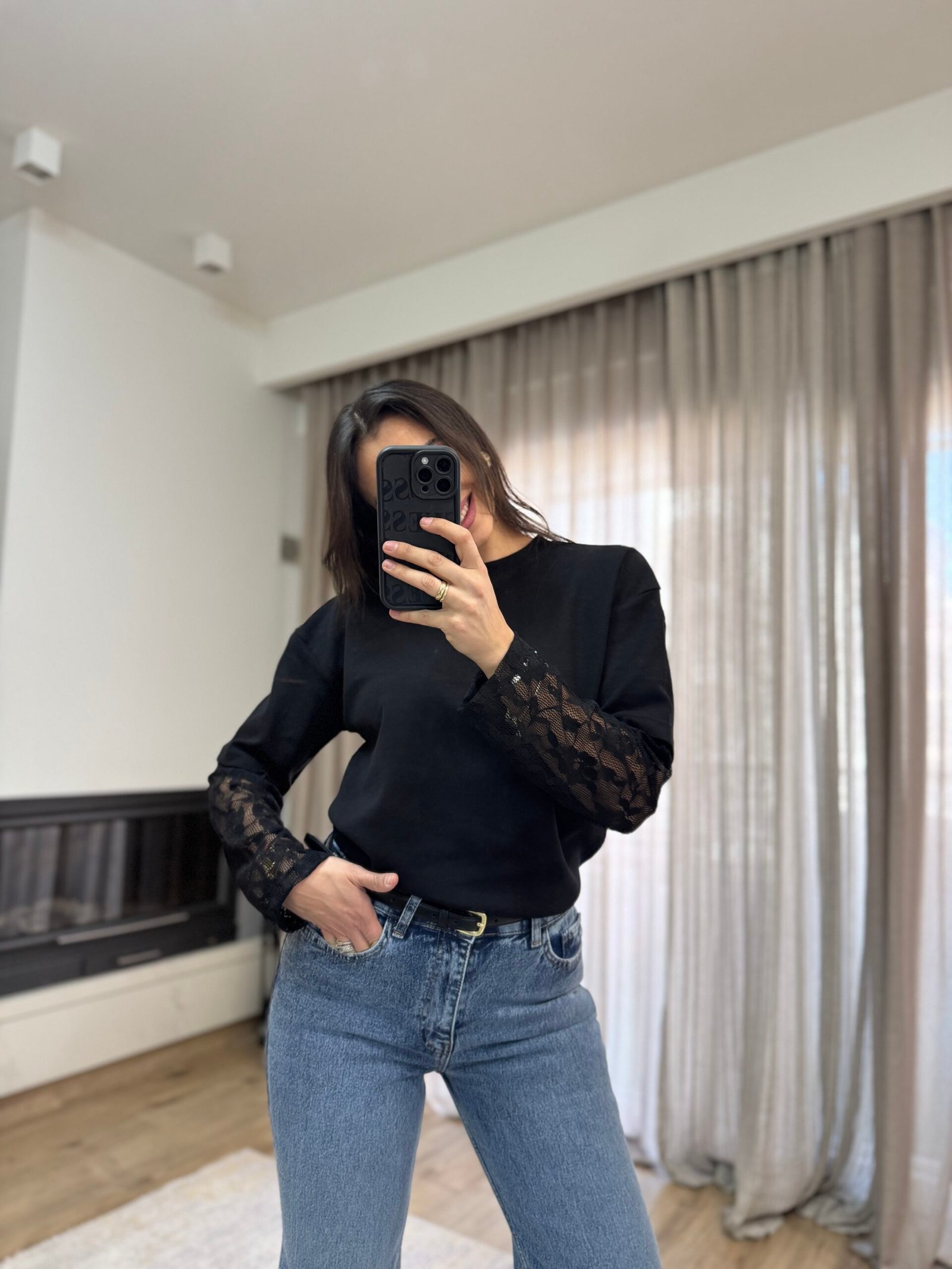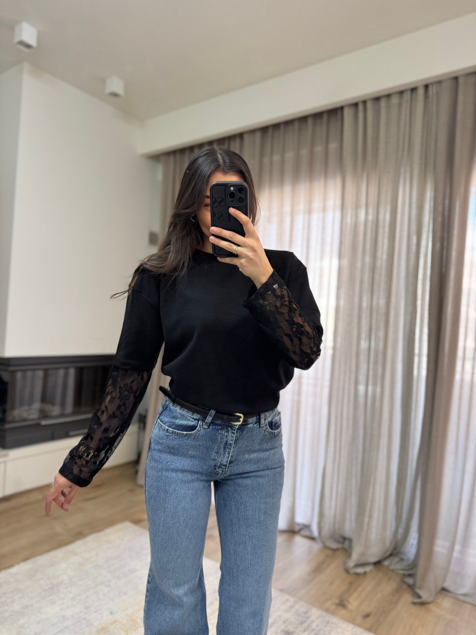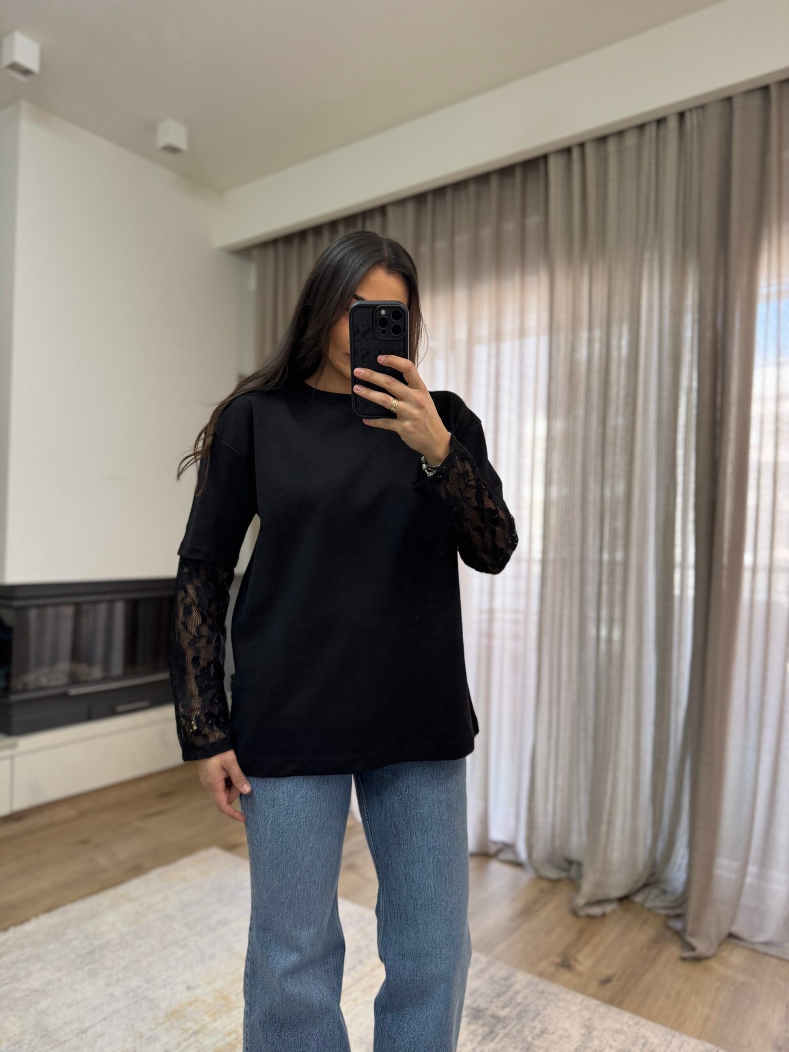 Μπλούζα με Μανίκι από Δαντέλα – Μαύρο