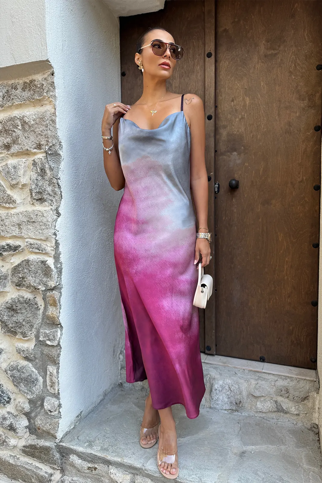Σατέν Φόρεμα με Τιράντα