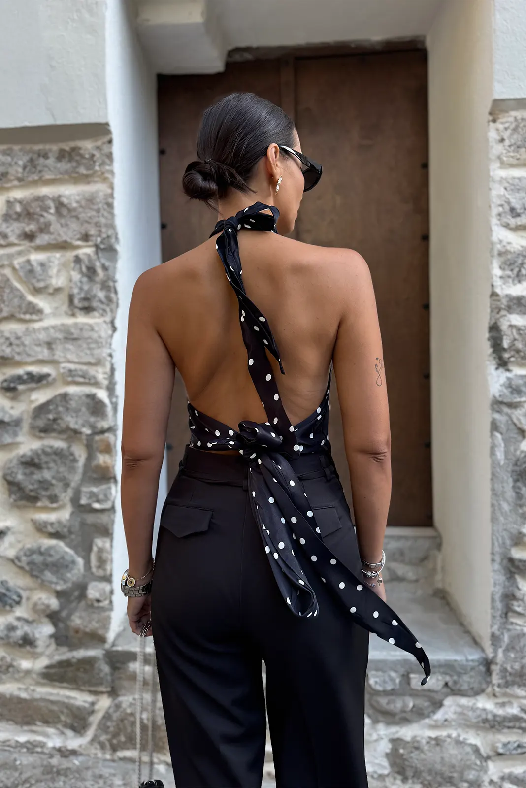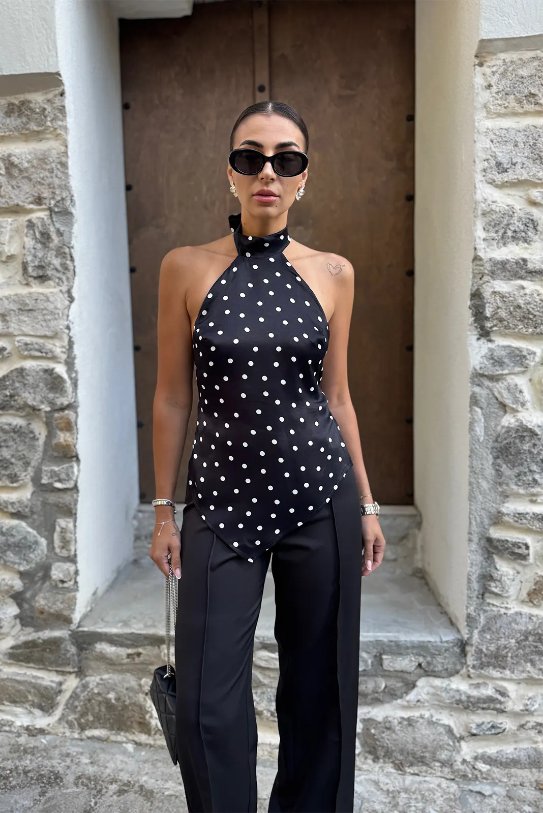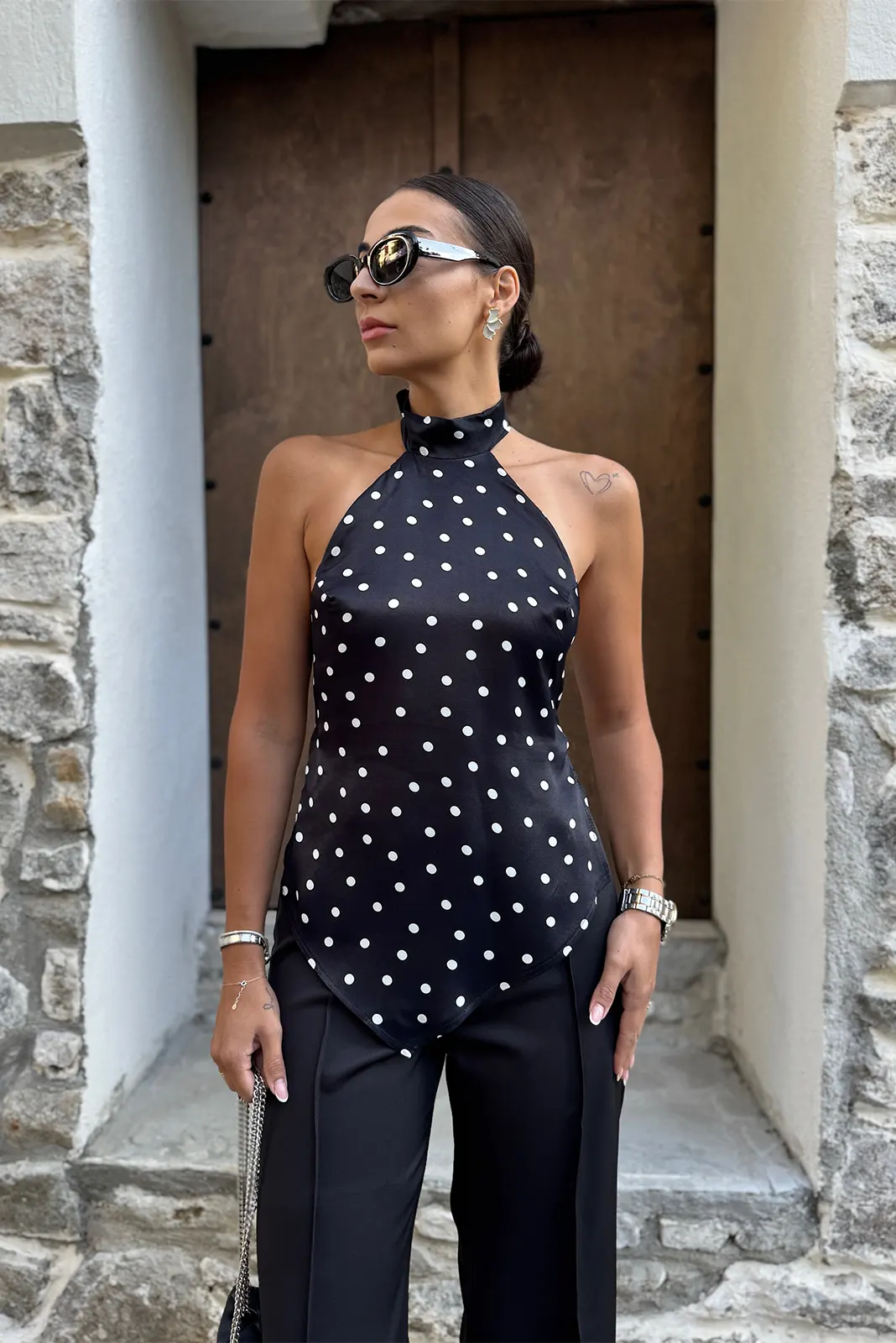 Σατέν Μπλούζα Πουά Εξώπλατο – Μαύρο