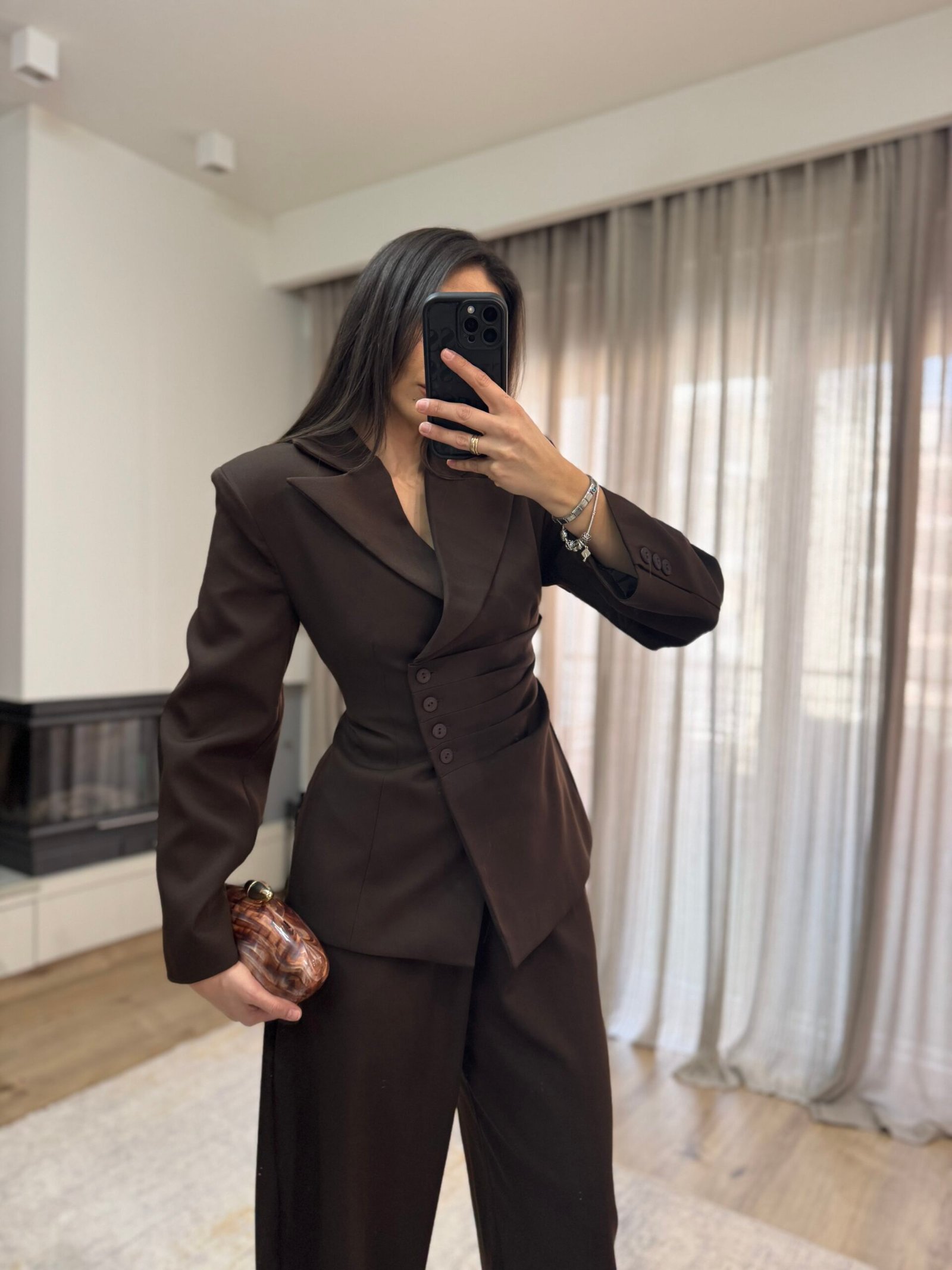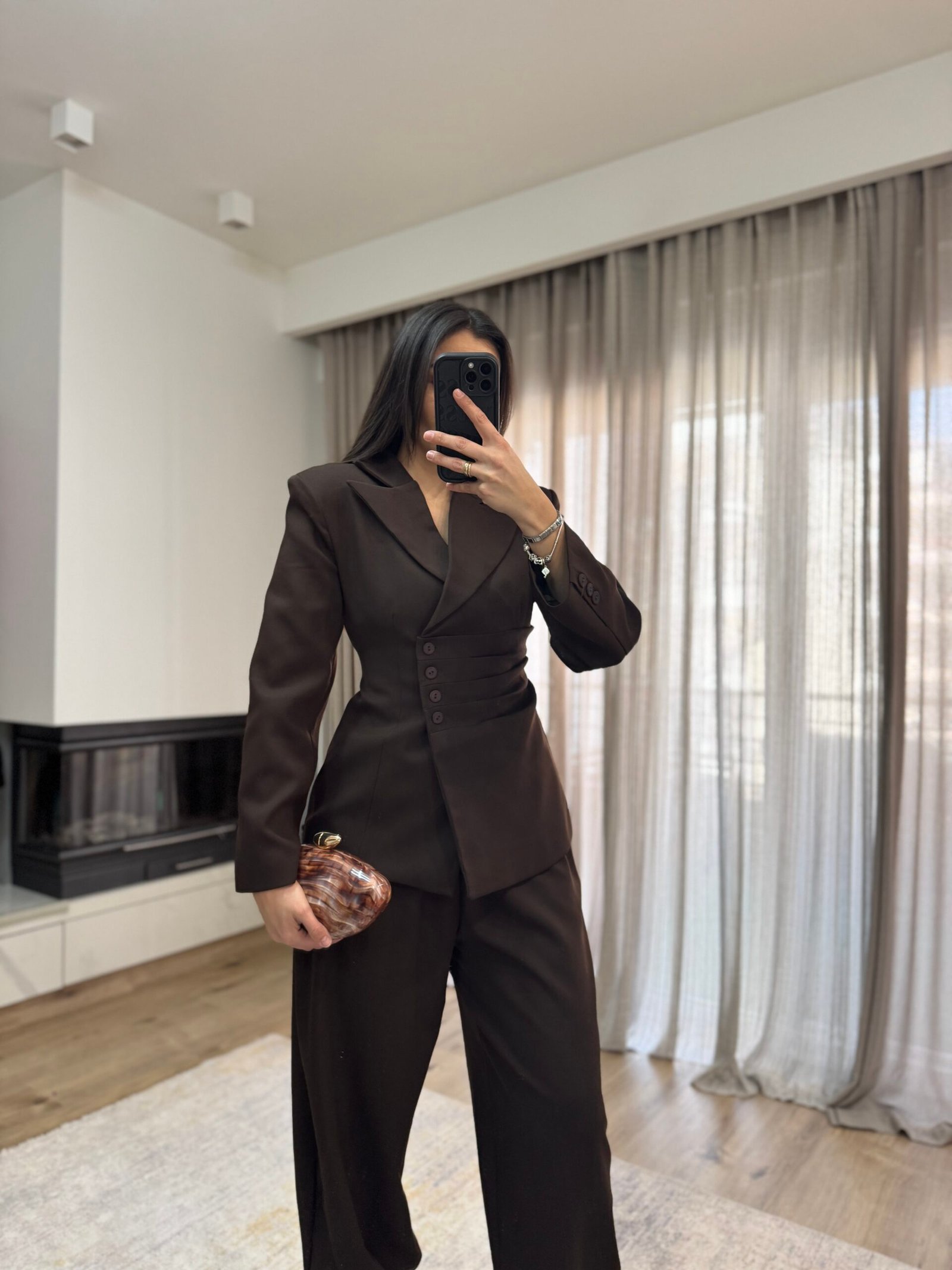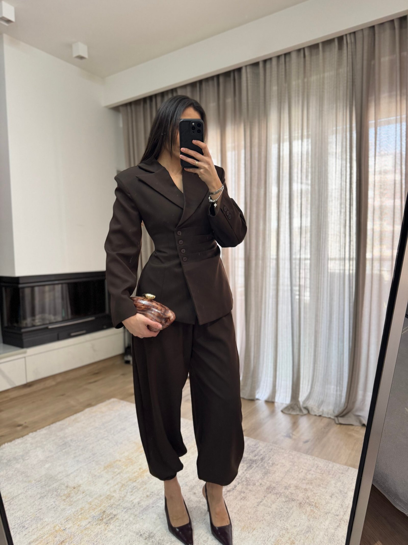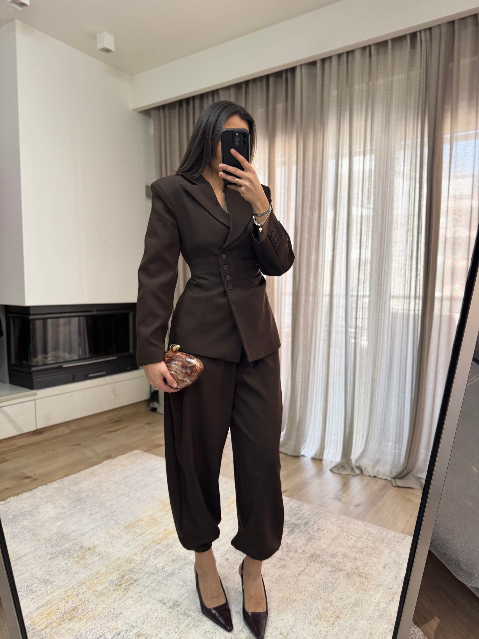 Σετ Σακάκι Μεσάτο κ Παντελόνι με Λάστιχο – Καφέ
