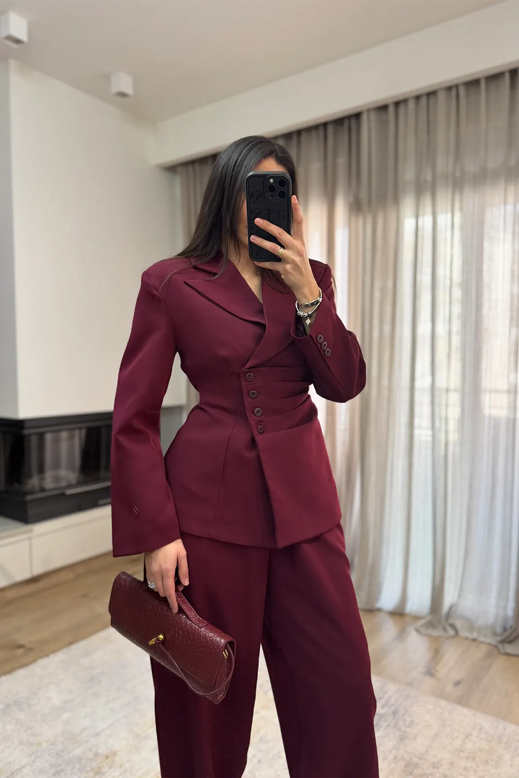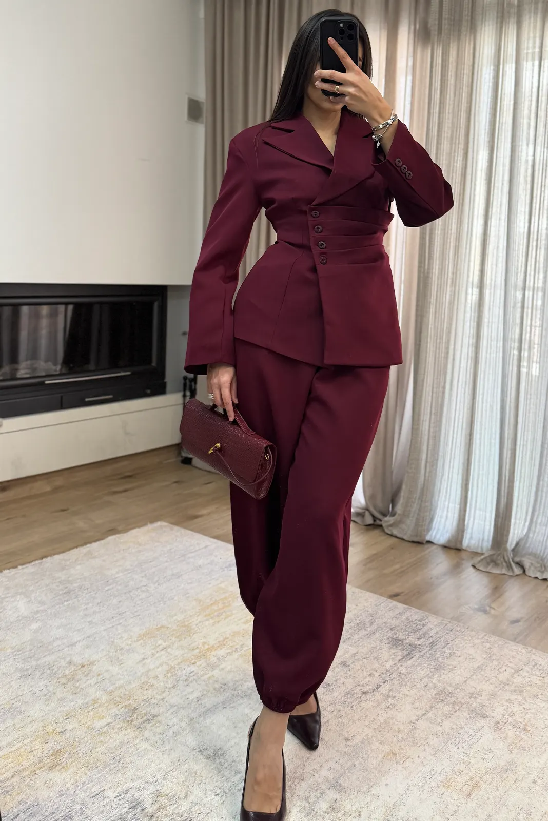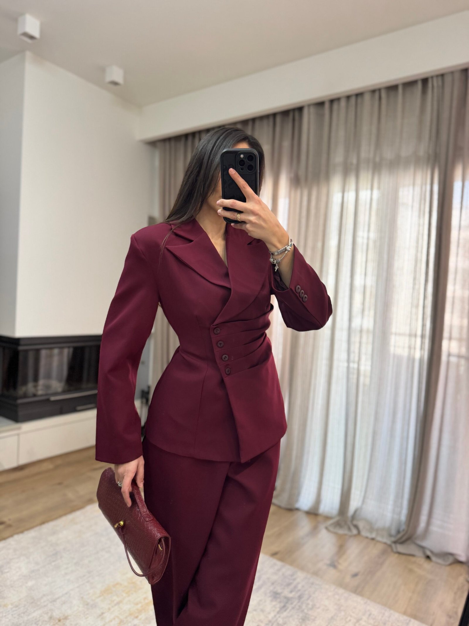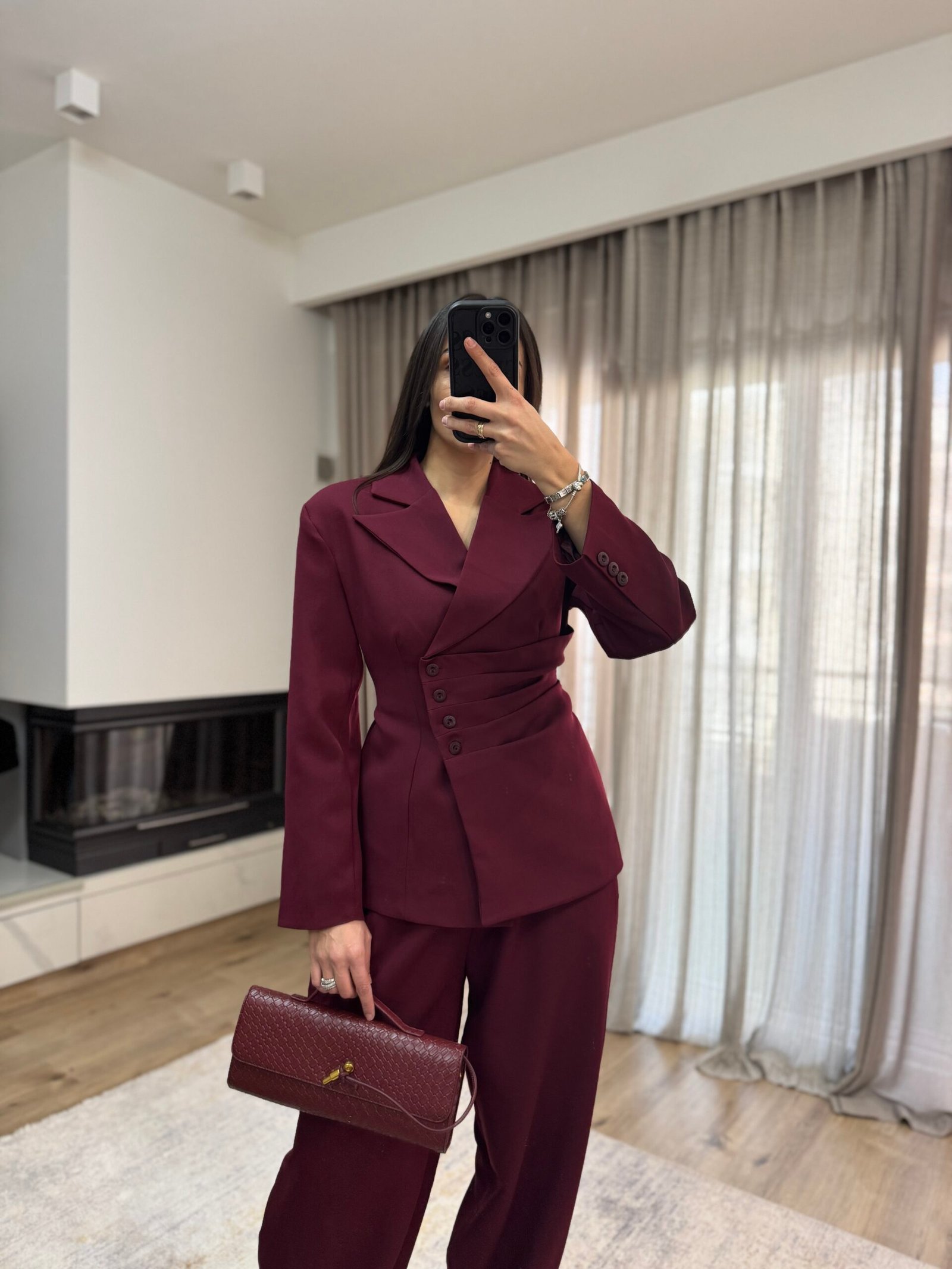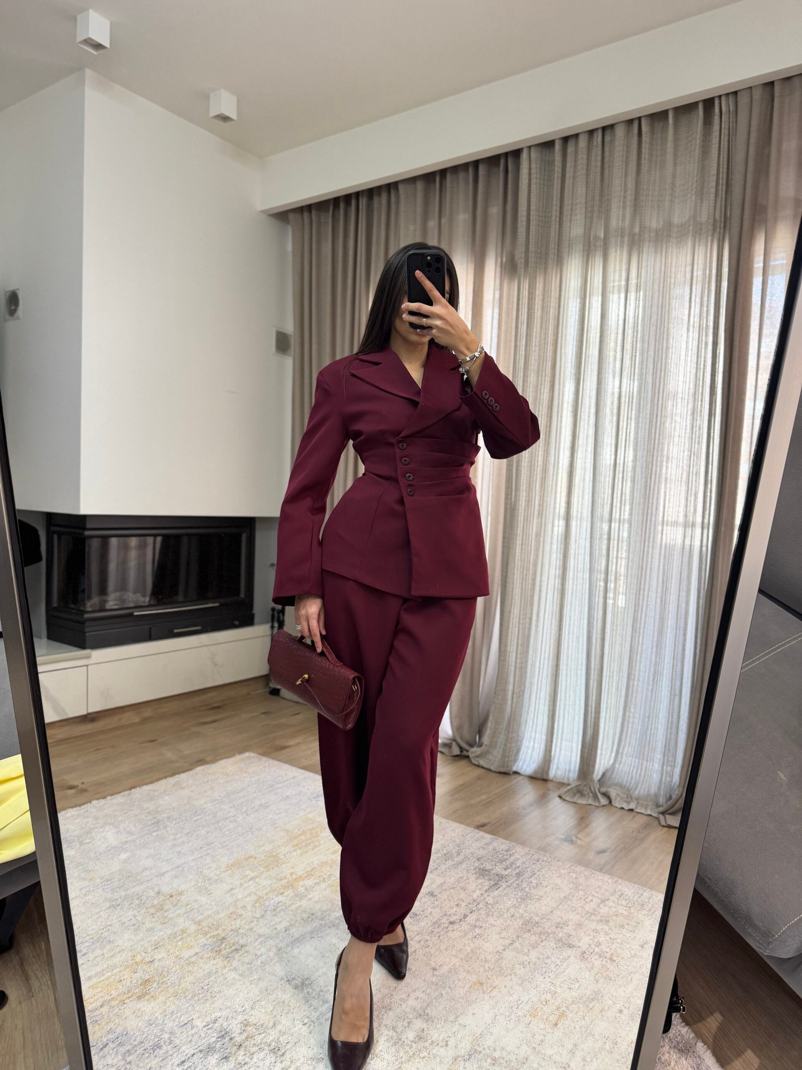 Σετ Σακάκι Μεσάτο κ Παντελόνι με Λάστιχο – Μπορντό