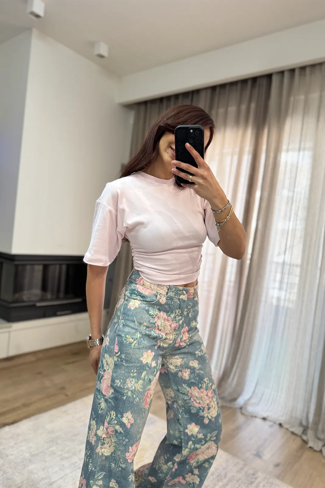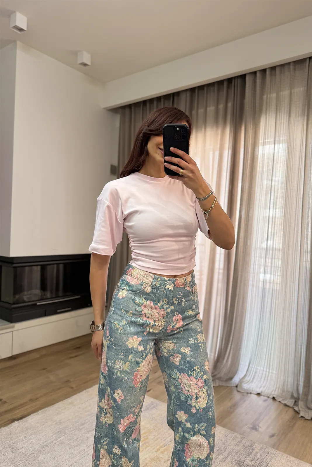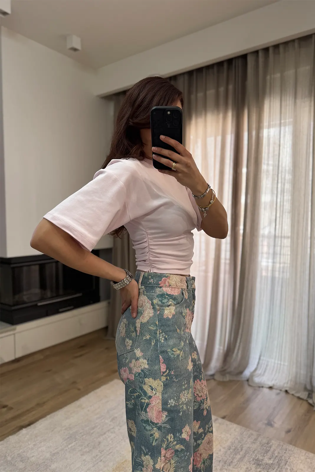 T-Shirt με Σούρες κ Φερμουάρ – Ανοιχτό Ροζ