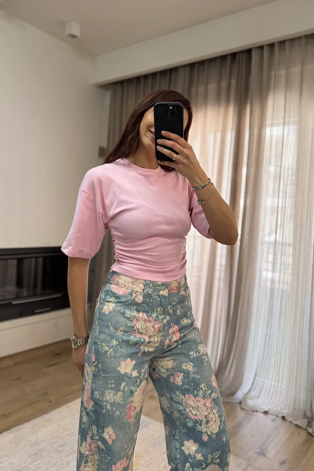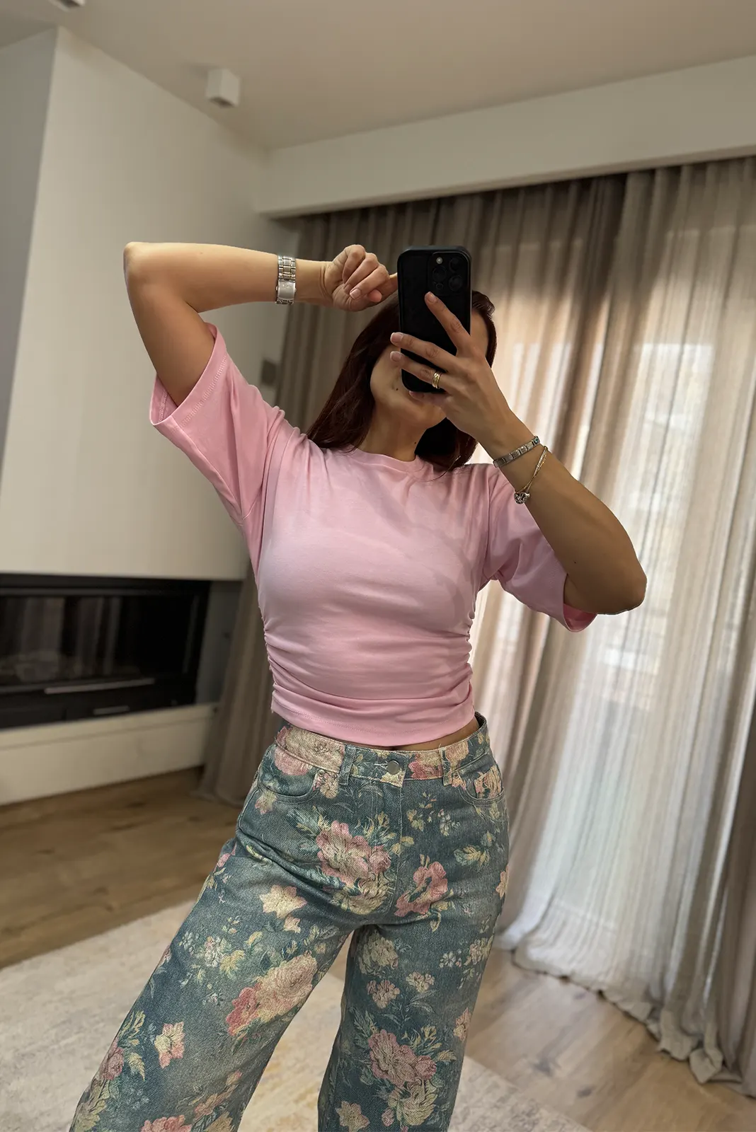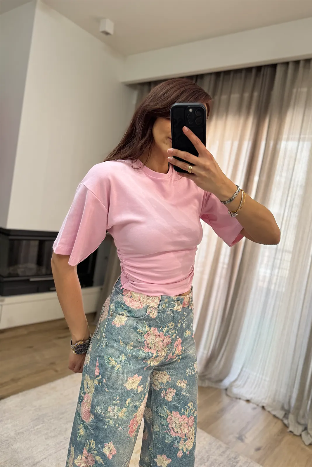 T-Shirt με Σούρες κ Φερμουάρ – Ροζ