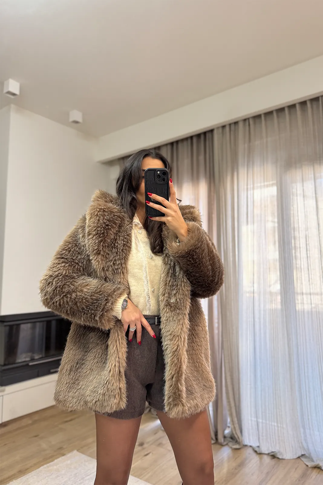 Zaya Παλτό από Συνθετική Γούνα – Ανοιχτό Καφέ